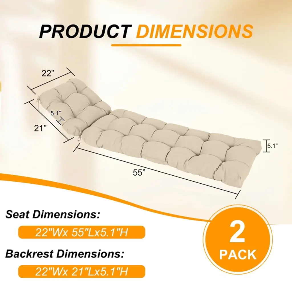 Aoodor 76" X 22" X 5.1" Polyester Tufted Chaise Lounge Cushion, Water-resistant & Fade-resistant Cushion For Outdoor Wicker Chaise Lounge Use, 2 Pack