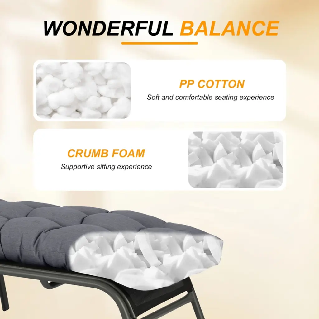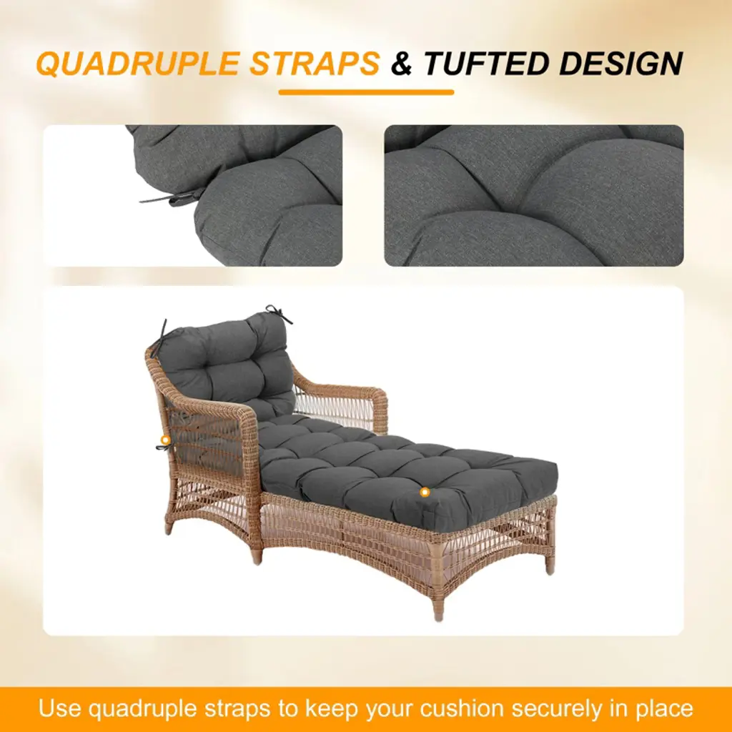 This outdoor lounge chair cushion is specifically designed for antique rattan weave chaise lounge chairs, while also compatible with various other types of outdoor lounge chairs and patio chairs, the cushion cover is made of high-end polyester, the tufted detailing elevates this cushion's design aesthetic meanwhile improves the aesthetics of this outdoor cushion