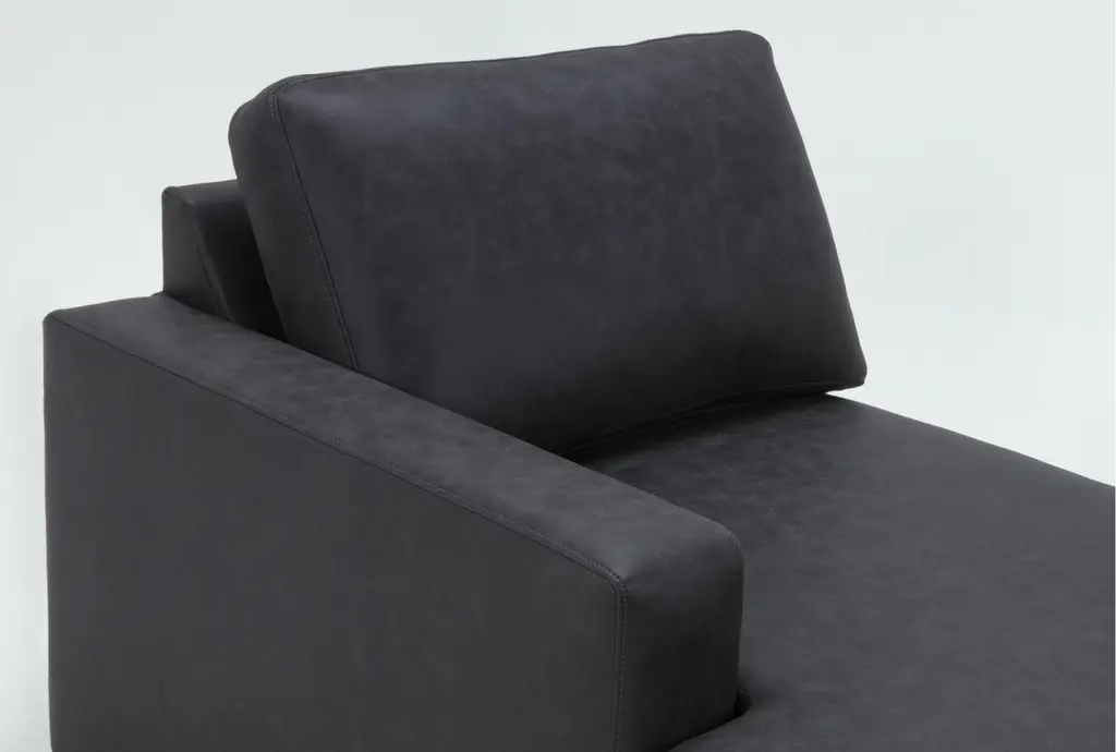 Made by and for Living Spaces, our Araceli faux leather left arm facing chaise boasts clean, modern lines and showcases a high level of style, comfort, quality and value. Soft, durable and easy to clean, vegan faux leather upholstery is a charming, price-conscious alternative to the real deal. Multiple color and configuration options allow you to choose what's best for you and your space.
