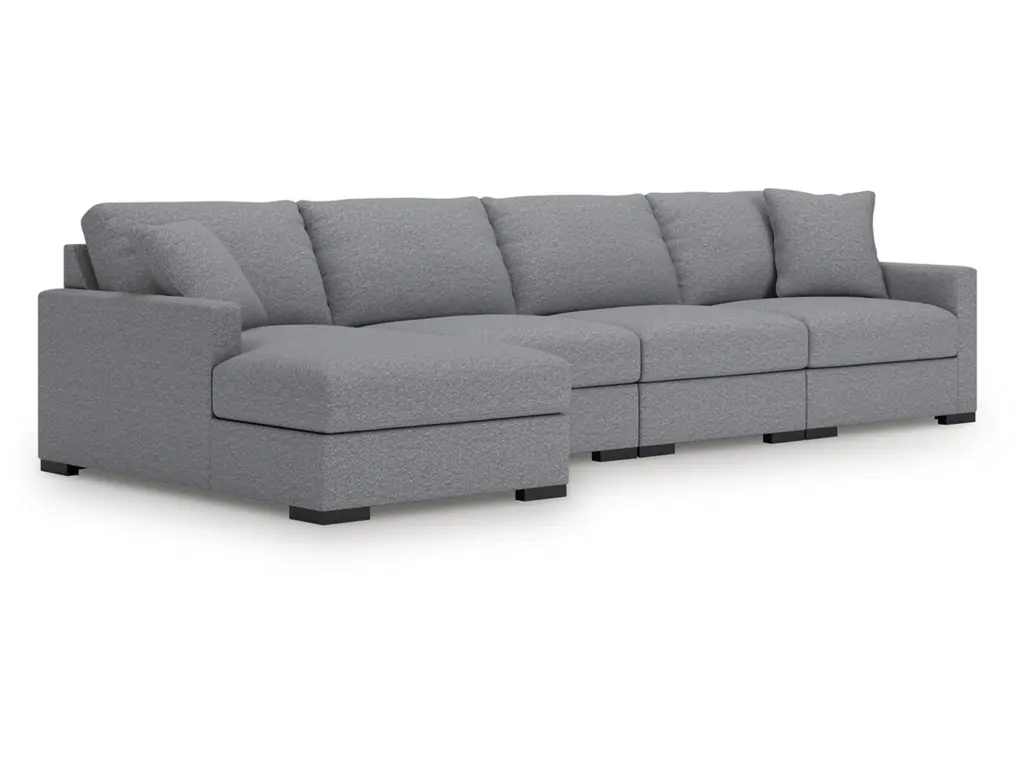 Araceli II Pewter Black Fabric 76" Double Chaise Lounge delivers modern versatility with its clean lines, detailed stitching and modular design for ultimate indoor lounging comfort.