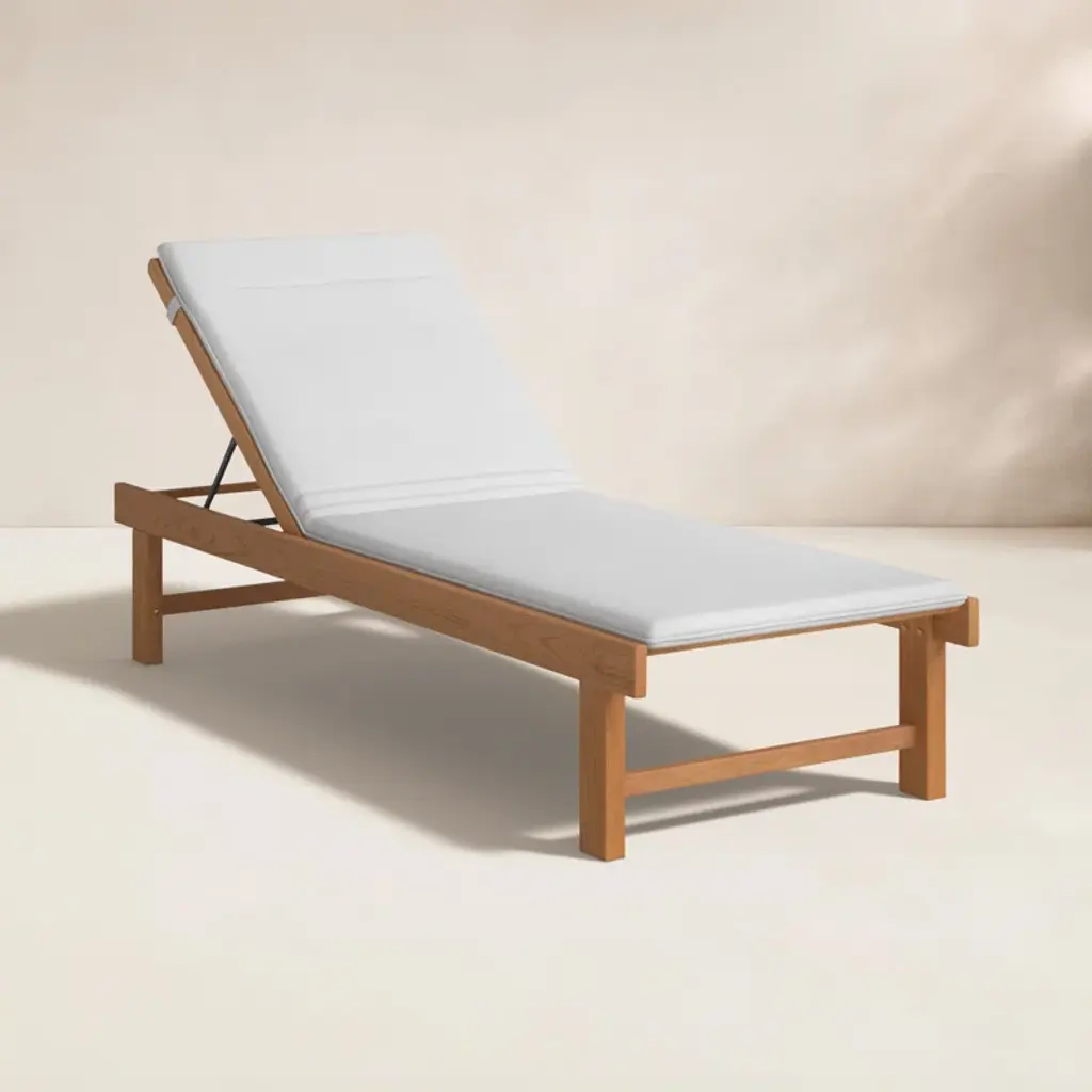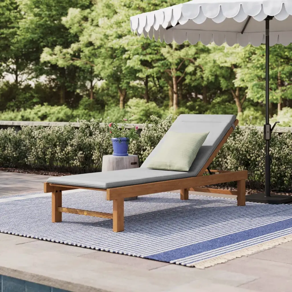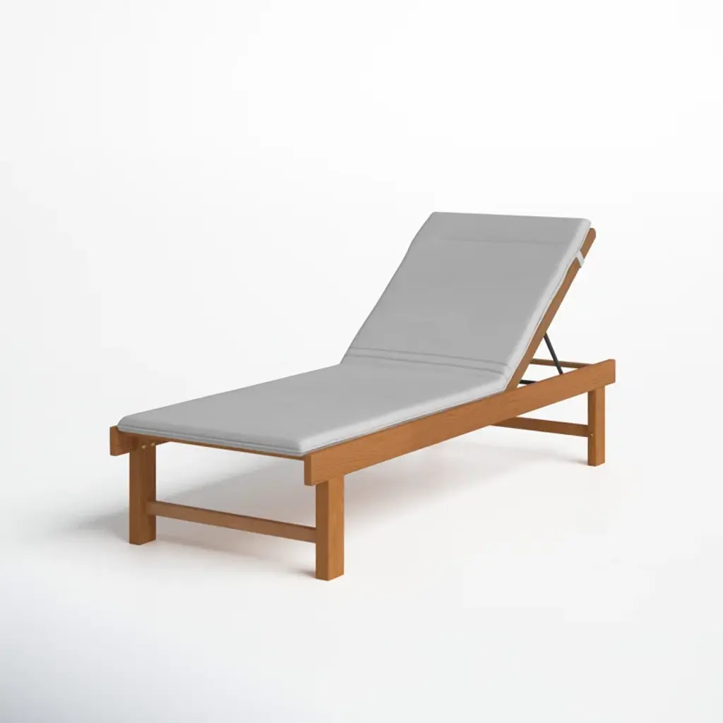 Bask in the sun and enjoy your outdoor space with this elegant and cozy patio recliner. Expertly crafted from solid teak wood, it's designed to withstand all types of weather while gracefully aging to a lovely gray hue. Find your perfect angle with five different reclining positions, and sink into the foam-filled cushion for ultimate relaxation. The slatted design allows for easy rainwater drainage, ensuring your chaise lounge stays looking fresh. Ideal for residential or non-residential use, this recliner is the perfect addition to any outdoor oasis.