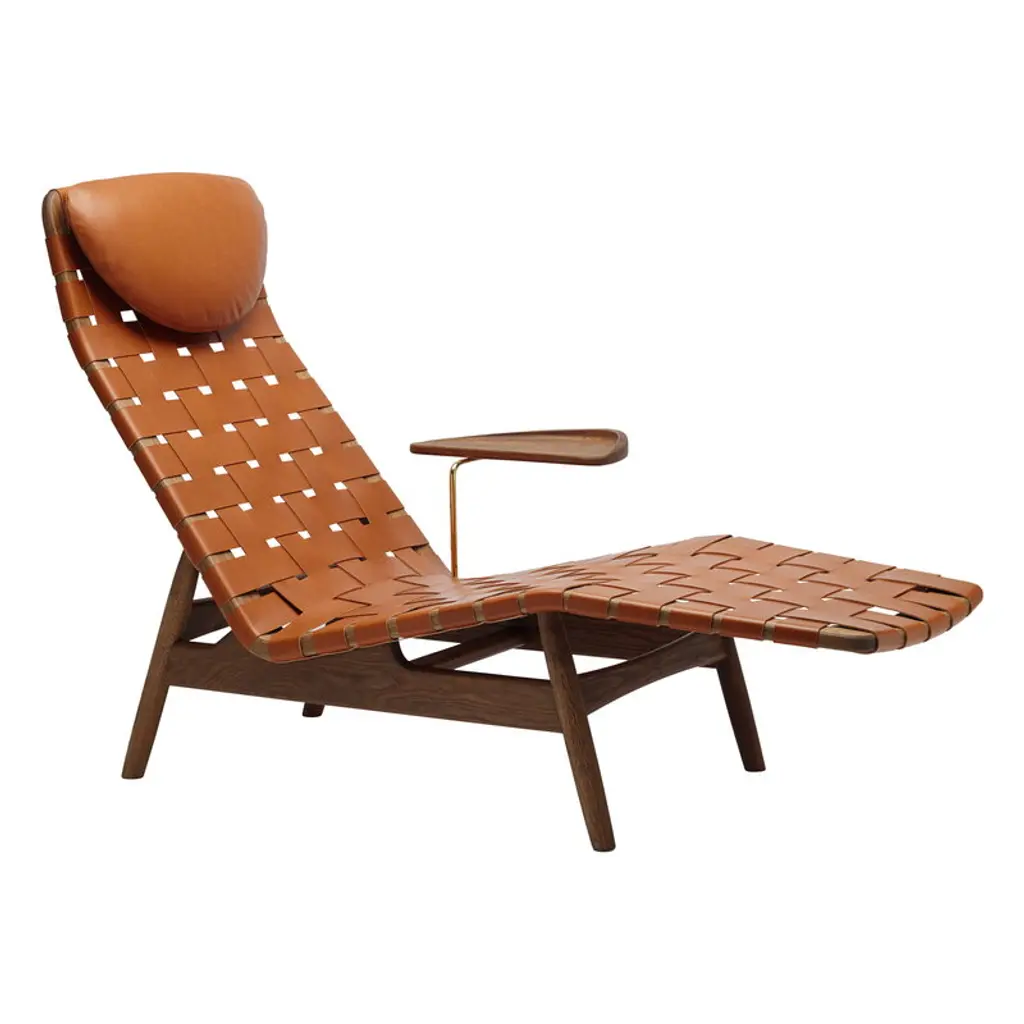 The AV Egoist chaise longue by Sibast beckons you to relax, kick your feet up and perhaps even doze off for a little afternoon nap. This lounge chair, representing the Danish elegance of the 1950s, features a beautiful solid wood frame and a comfortably reclined woven leather seat. The cushioned pillow provides support for your neck, and if desired, you can complete the lounging experience with a separately sold side table that attaches to the chair’s side. Designed by Arne Vodder in the early 1950s, the AV Egoist chair was among the designer’s personal favorites. Only a few pieces of this chaise longue were produced back then, and the entire masterpiece could have been forgotten if it weren’t for the Danish company Sibast reviving it. Based on the original drawings, measurements and photographs, the reinterpretation of the AV Egoist was carried out through the collaboration of Sibast’s designers and Arne Vodder’s son, Michael Vodder. The end result represents genuine mid-modern charm and a classically timeless esthetic that looks fresh and relevant also in contemporary interiors.