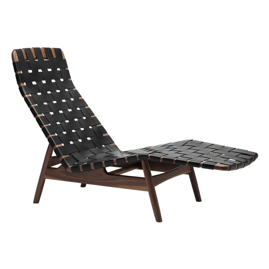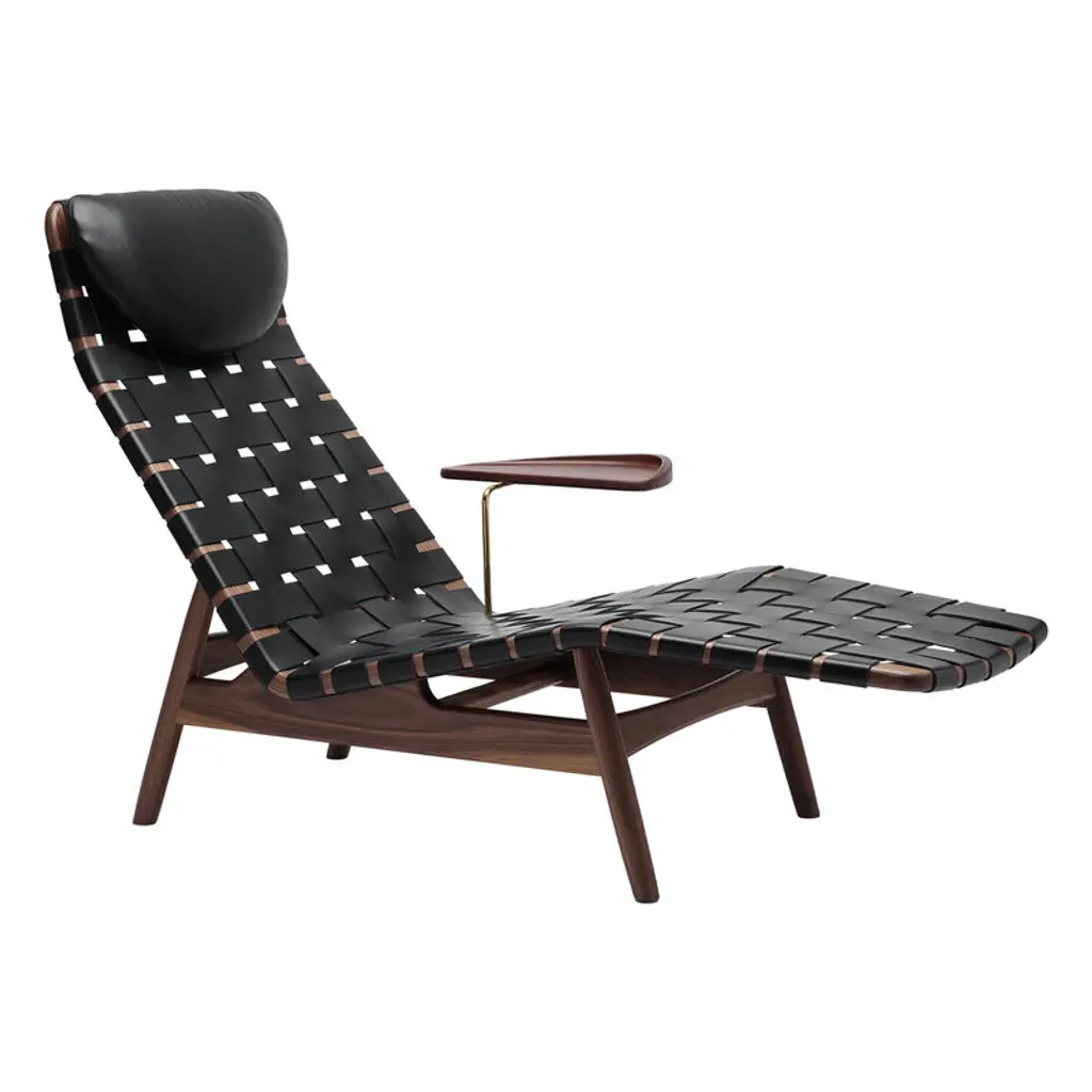 Av Egoist Chaise Longue W/ Cushion, Walnut - Black Leather