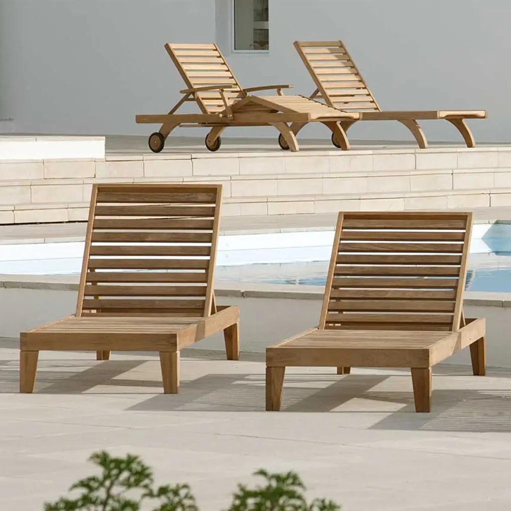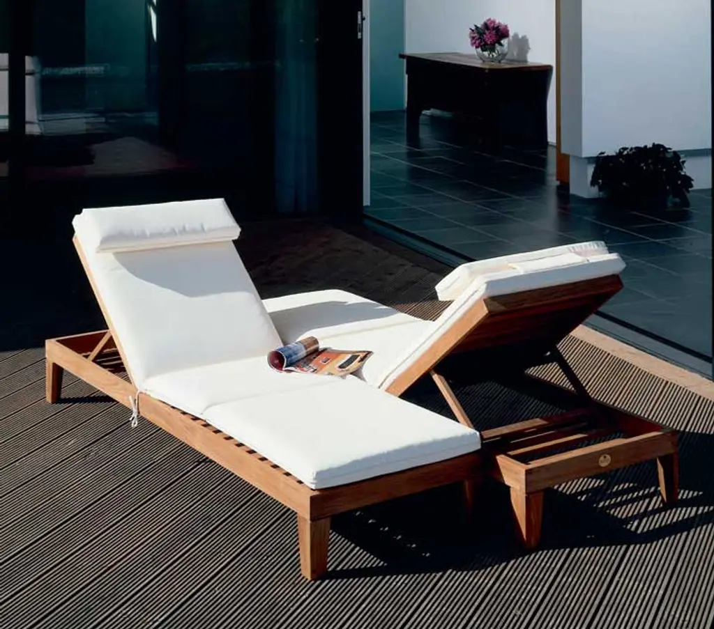 Capri Base teak sun lounger with four position backrest. May be linked together in several configurations with special brass clips. Fabrics Note: Additional fabric options are available upon request. Please contact us for a quote: 800-762-5374 or customercare@frontera.com.Please Note: Fabrics, canopies, cushions, covers, special order sling colors, and special order finishes are considered customized and may have longer lead times. These items cannot be cancelled, returned, or exchanged.