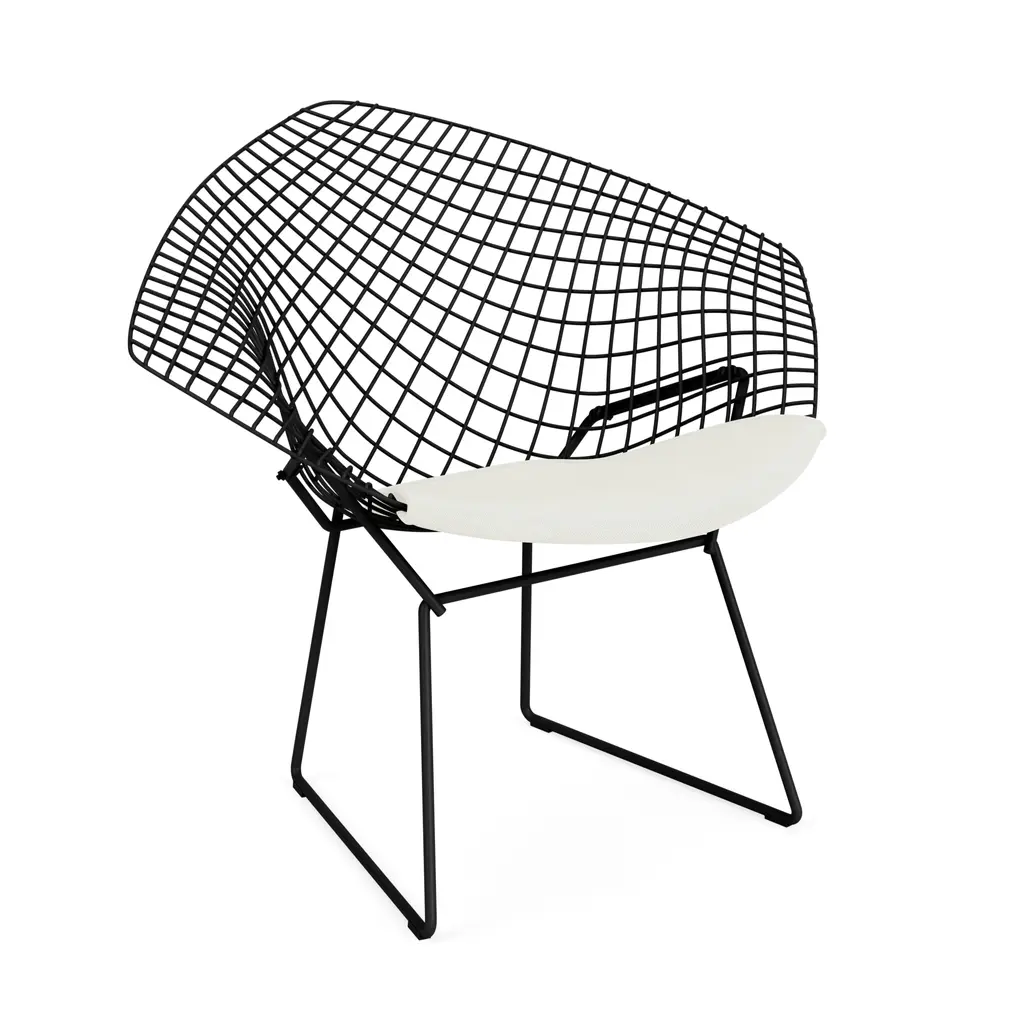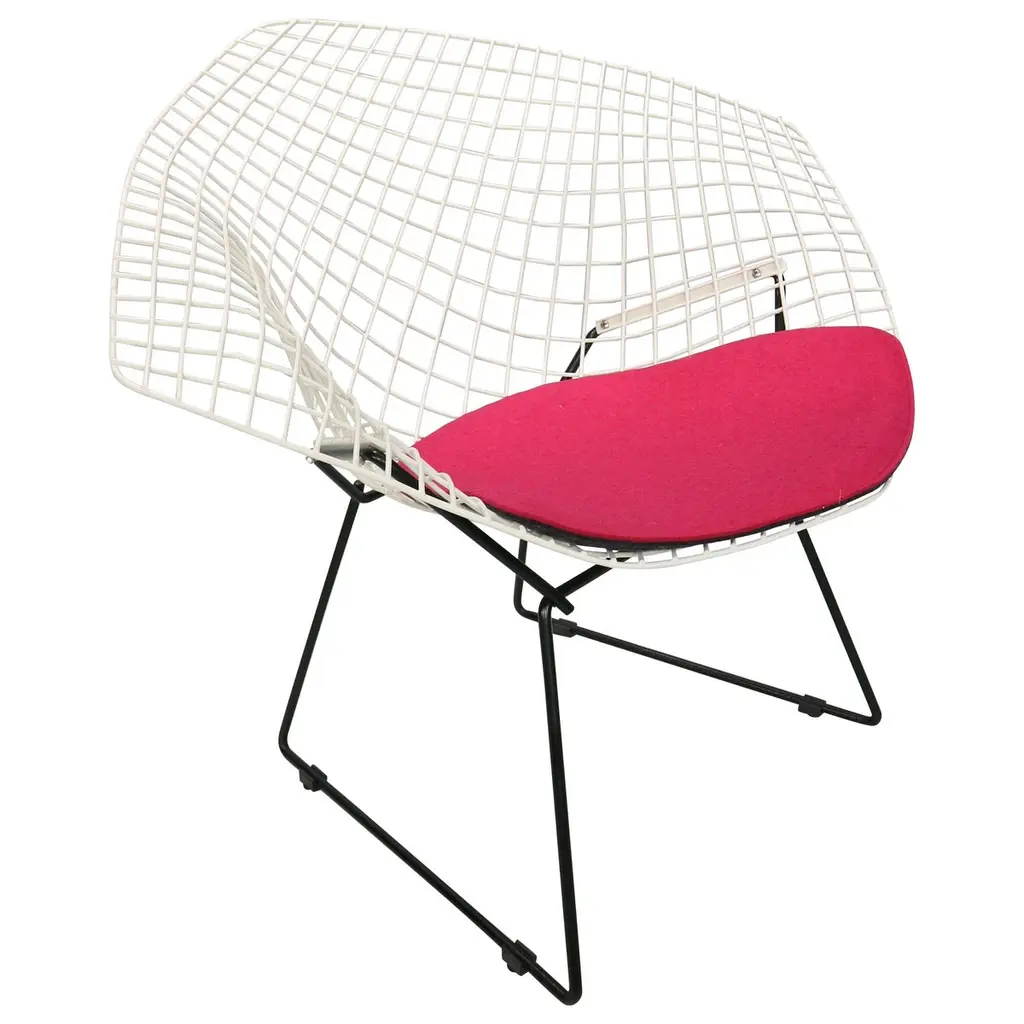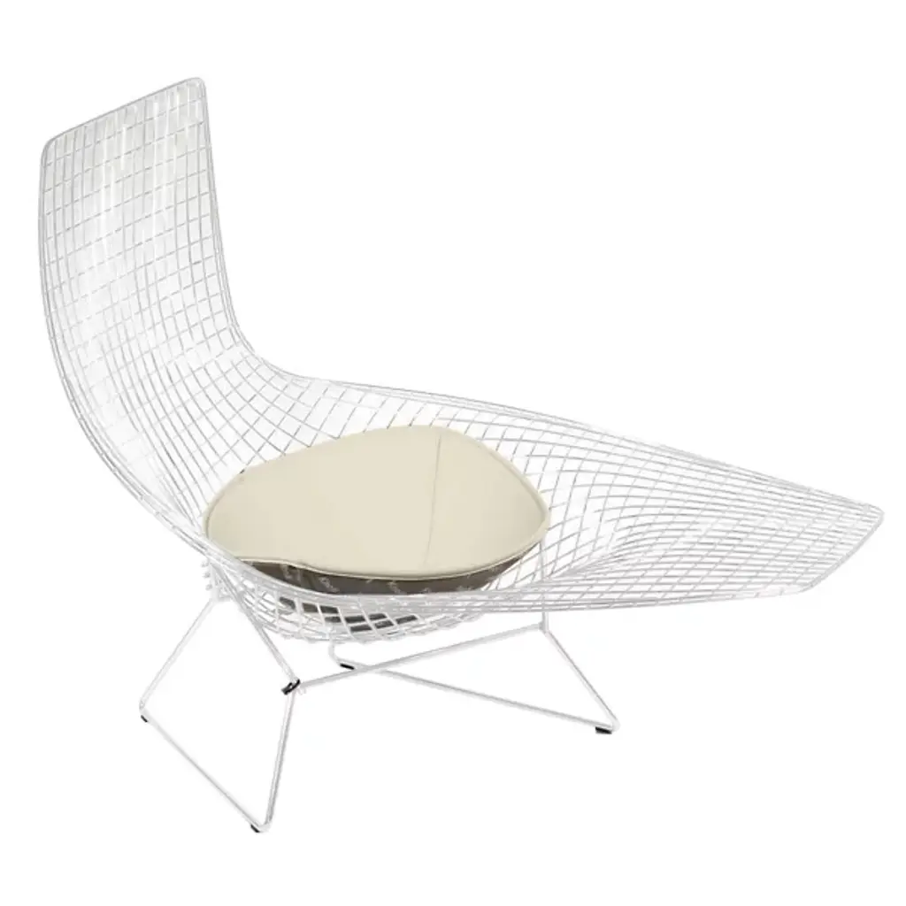 In 1952, designer Harry Bertoia famously experimented with sculpting smooth metal rods into functional art forms. Many of the products were released as part of his namesake collection, but this asymmetric chaise was limited to the prototype – until now. It's an artful addition to any design space, featuring a seat cushion that secures to the chaise with lock-snaps, adding comfort to complement the visual appeal.