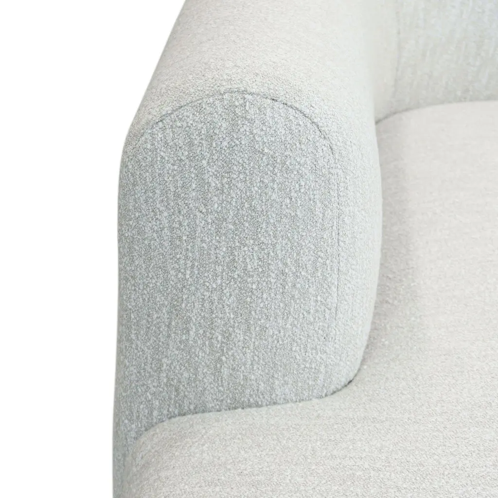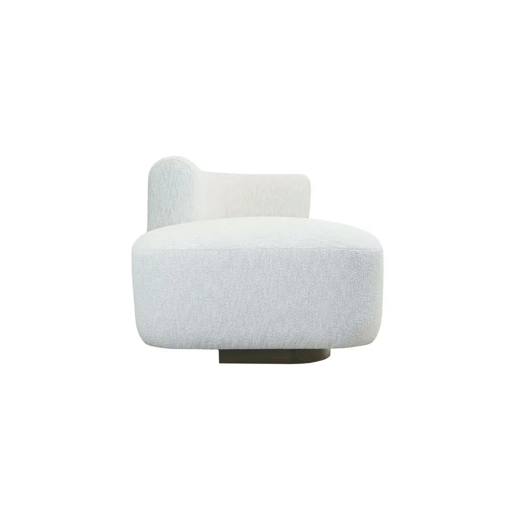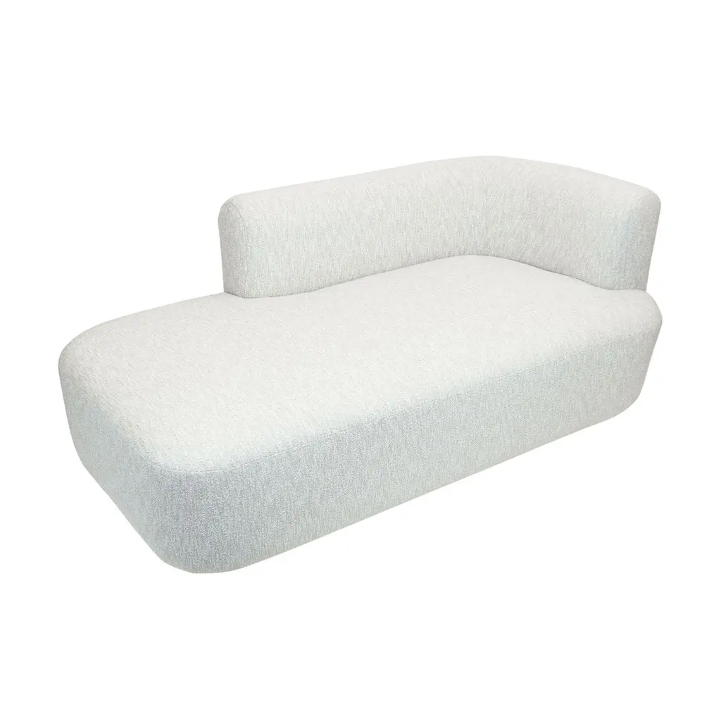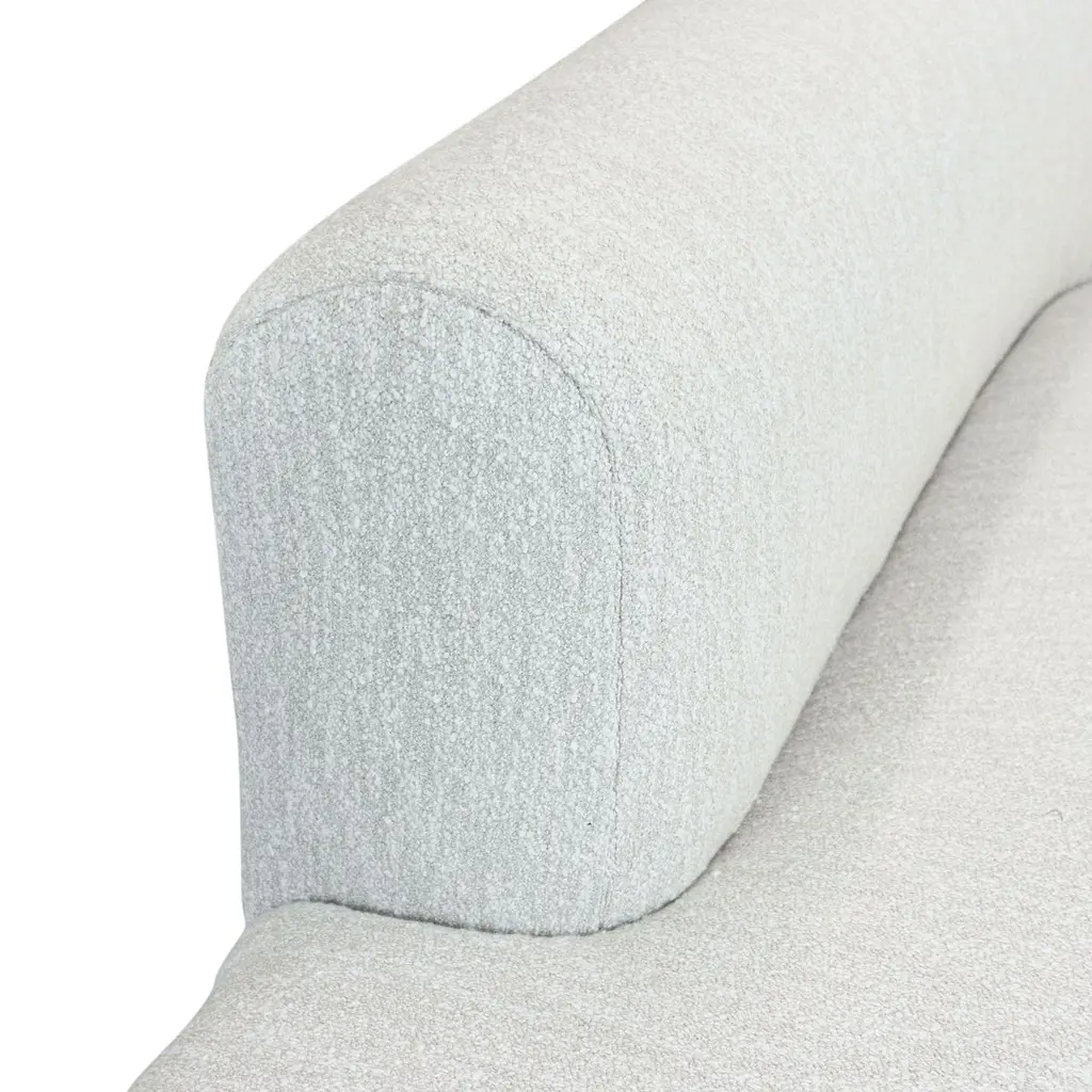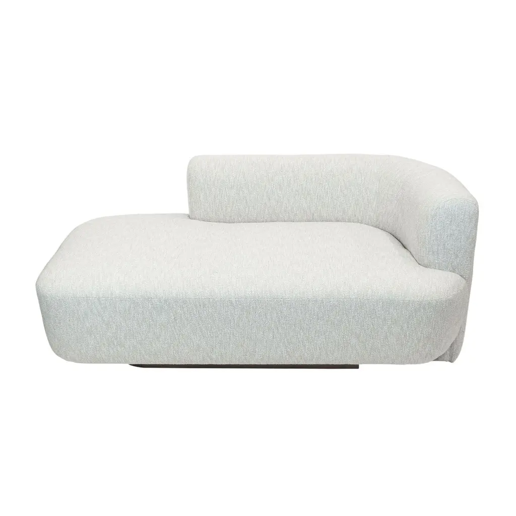 Blush Colored Bouclé Chaise White Oak Base Chaise Lounge