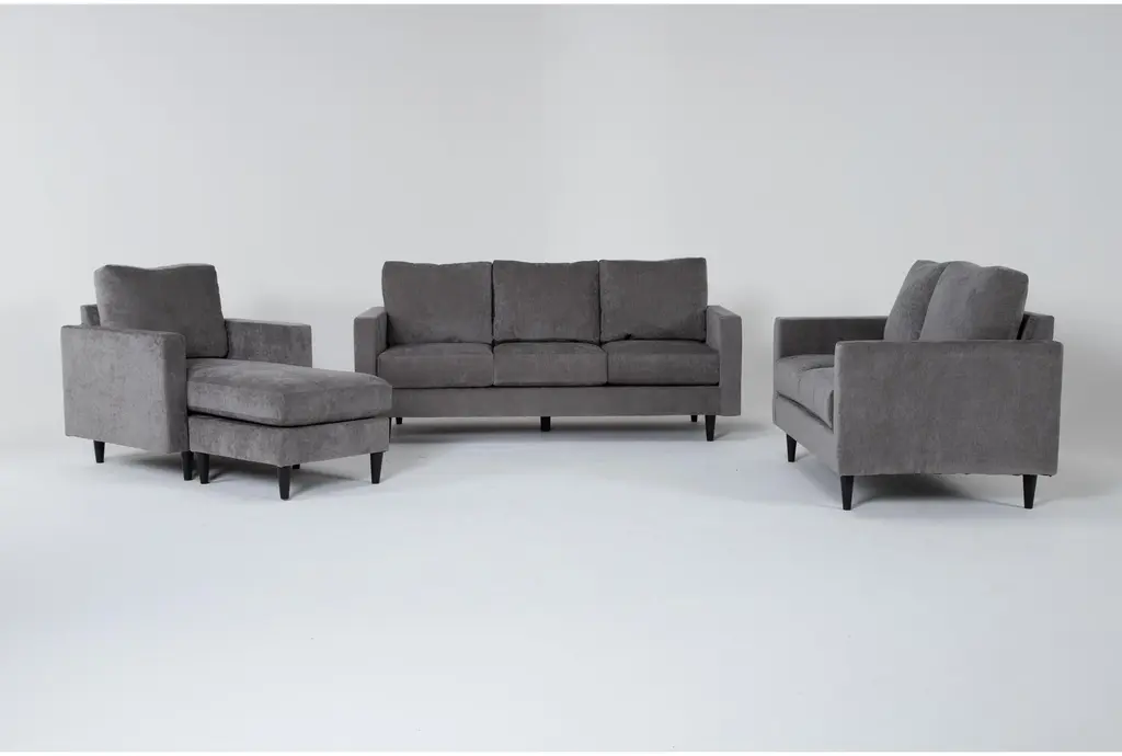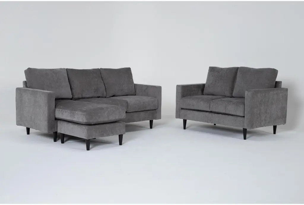 Upgrade your living room with the Bradley Charcoal Grey Fabric Modern 2 Piece Sofa with Reversible Chaise & Arm Chair Set. Designed in a sophisticated modern style, this set is perfect for relaxing or entertaining guests. The Europa Charcoal fabric adds a touch of contemporary flair while offering durable 100% polyester upholstery.