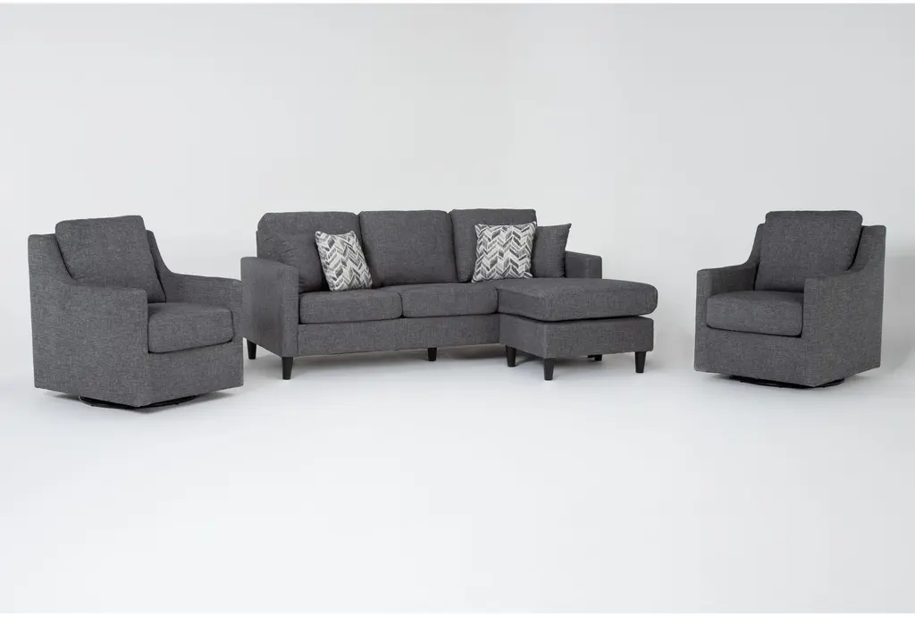 Bradley Charcoal Grey Fabric Modern 2 Piece Sofa Wtih Reversible Chaise & Armchair Set