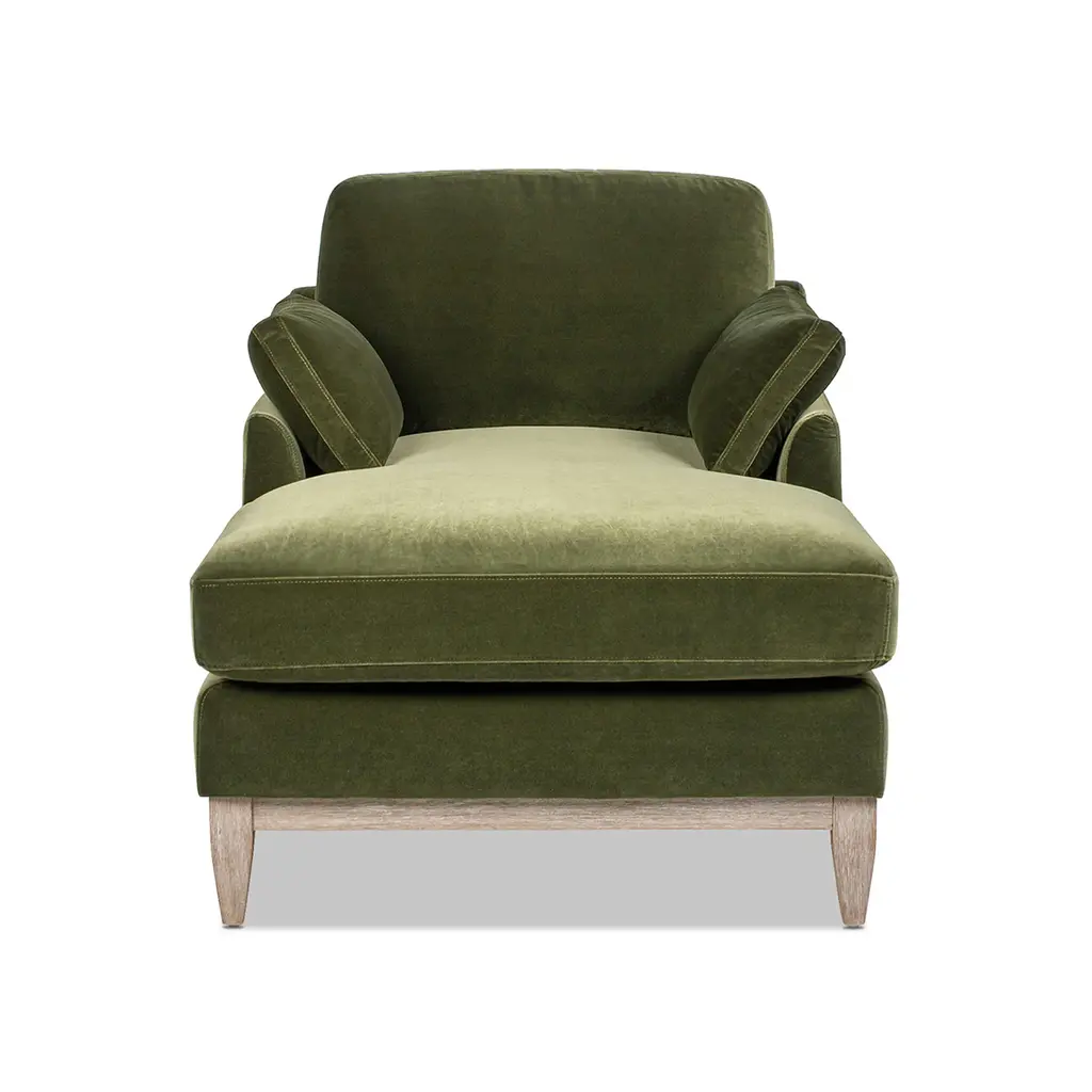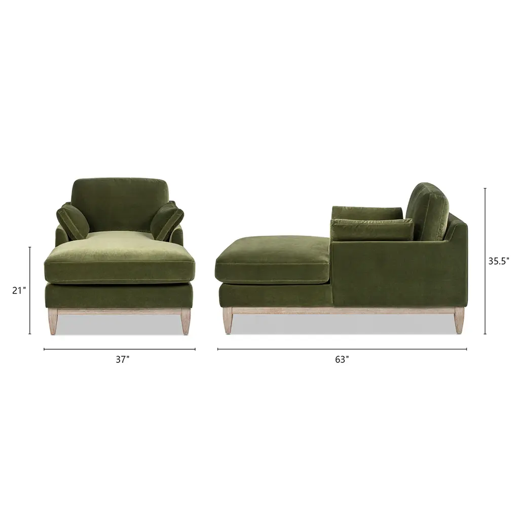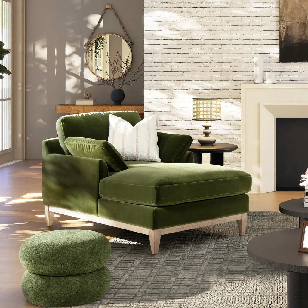 Bring comfort and sustainability to your space with this chaise lounge, crafted with a natural rubberwood base and legs that highlight organic textures and eco-friendly design. The wrapped seat cushion provides a plush sitting experience, while the removable and reversible back and arm cushions ensure versatility and convenience. Each cushion features zippered covers for easy maintenance, making this chair both stylish and practical. Upholstered in pet- and child-friendly performance, it combines durability with a luxurious feel for everyday use