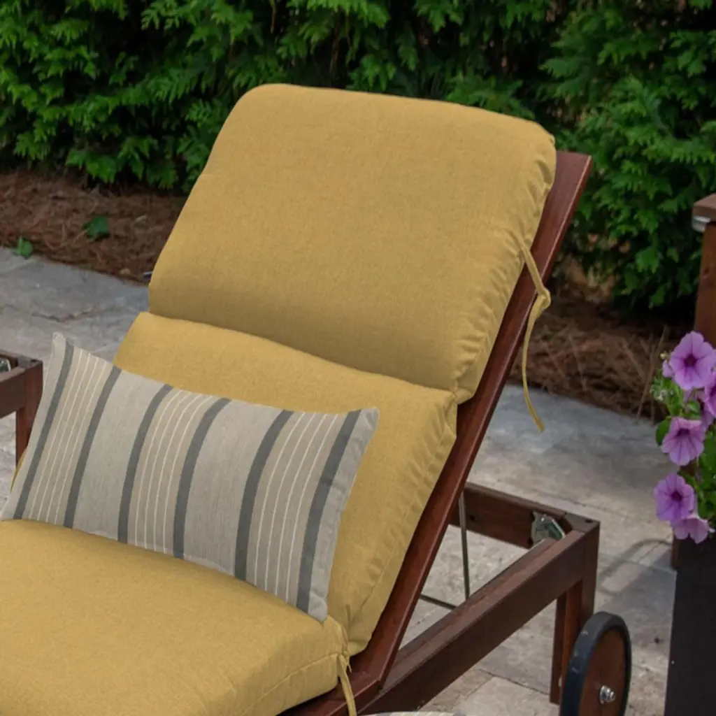 Instantly refresh your patio loungers with this outdoor seat cushion. It's made from durable fabric with quick-dry polyester filling, and it comes in your choice of color to mix and match with your decor. We love how the tufted design lets this cushion curve and contour to your adjustable chaise – and how built-in ties help keep it in place on breezy days. Plus, because it's reversible, it looks great no matter how you style it.