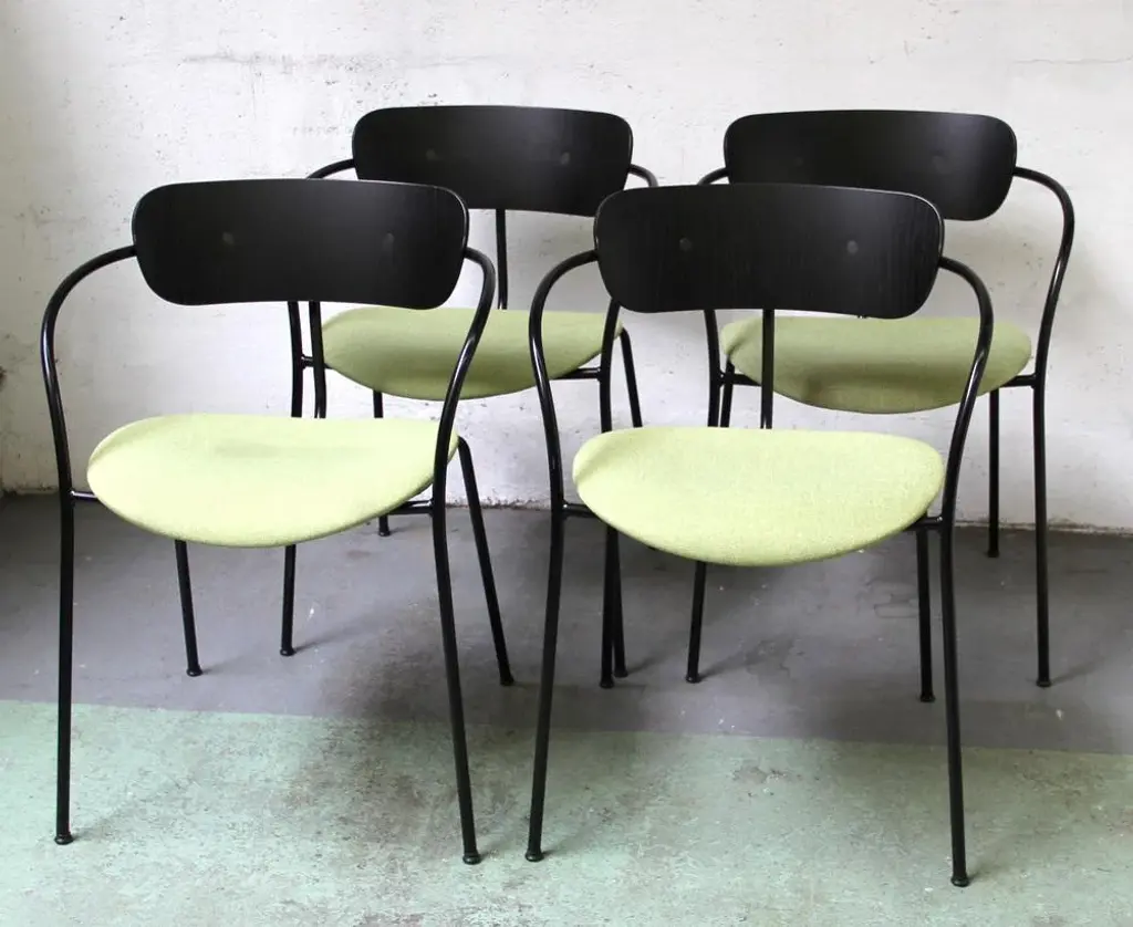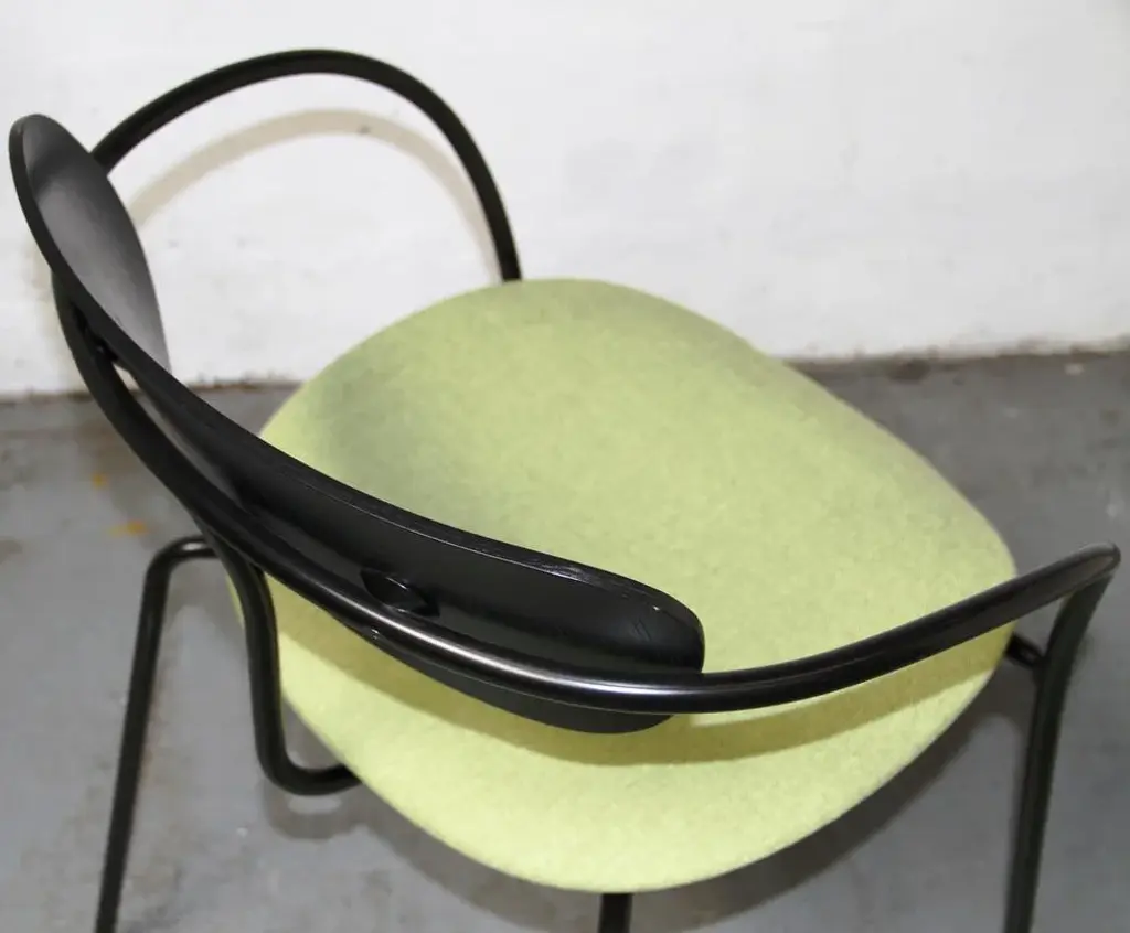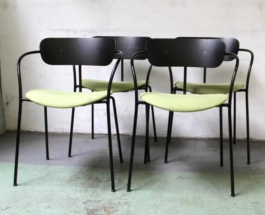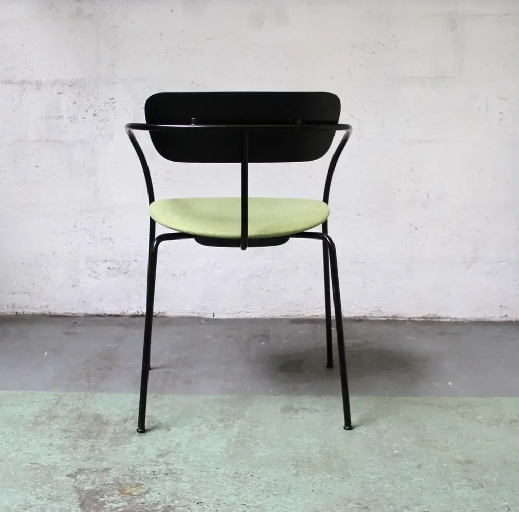 Design chair Pavilion AV4 by Anderss & Voll for & Tradition. Black tinted metal structure, with black tinted wooden backrest and padded -upholstered lounge. 45cm seat height. Perfect for all your home or office space. This piece has an attribution mark, I am sure that it is completely authentic and take full responsibility for any authenticity issues arising from misattribution