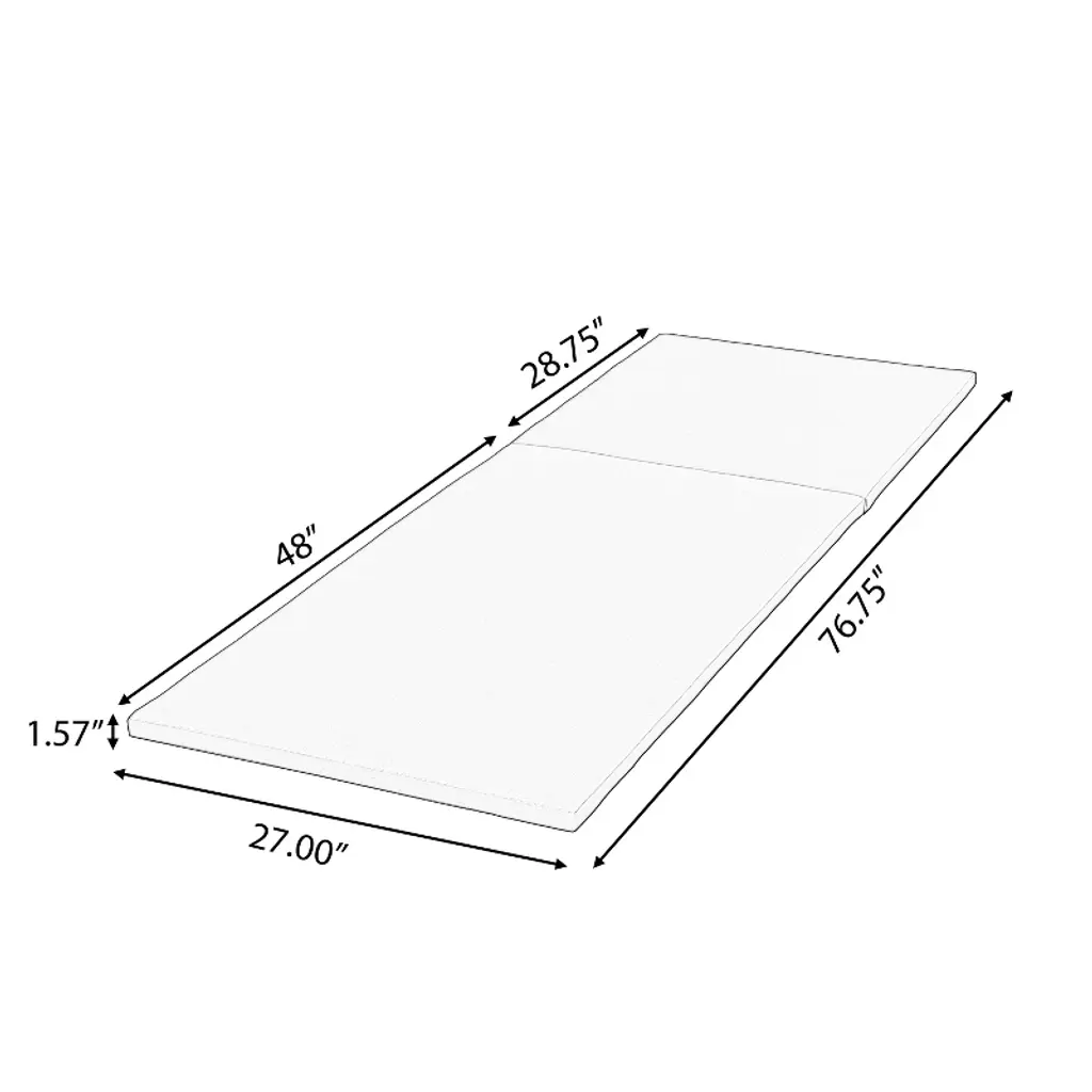 Upgrade your outdoor comfort with this foldable chaise lounge cushion, designed with a convenient 2-section construction for easy storage and portability. Measuring 76.75" in length, it features a 28.75" foldable segment that makes setup and storage effortless. The breathable, water-resistant fabric offers protection against light spills while maintaining a soft, comfortable feel—ideal for poolside, patio, or garden relaxation. Its neutral color seamlessly complements any outdoor décor, adding a refined touch to your seating area while delivering plush support for extended lounging sessions. Fiiler: Foam Fabric Material: PolyesterMultiple Color Options Assembly Required Dimensions:76.75” deep x 27.00 ” wide x 1.57” high Cushion Thickness: 1.57"
