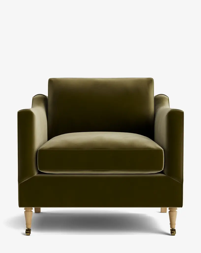 Crafted with timeless design and comfort in mind, our Clemence Chaise brings together the best of form and function. With a rounded back, turned legs and castors, the chaise features traditional elements for a classic feel. Customize this made-to-order piece with an Oak or Chestnut finish and your choice of an array of designer fabrics.