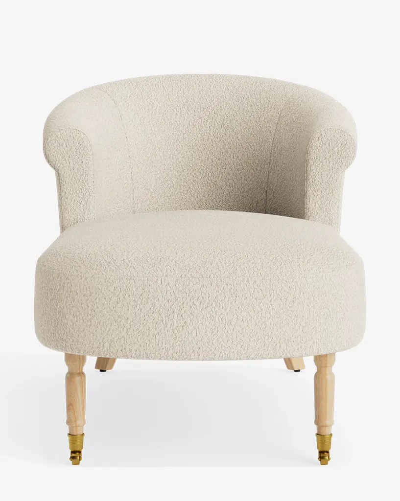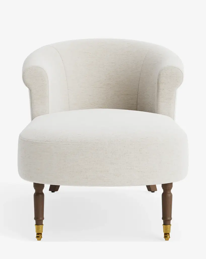 Crafted with timeless design and comfort in mind, our Clemence Chaise brings together the best of form and function. With a rounded back, turned legs and castors, the chaise features traditional elements for a classic feel. Customize this made-to-order piece with an Oak or Chestnut finish and your choice of an array of designer fabrics.