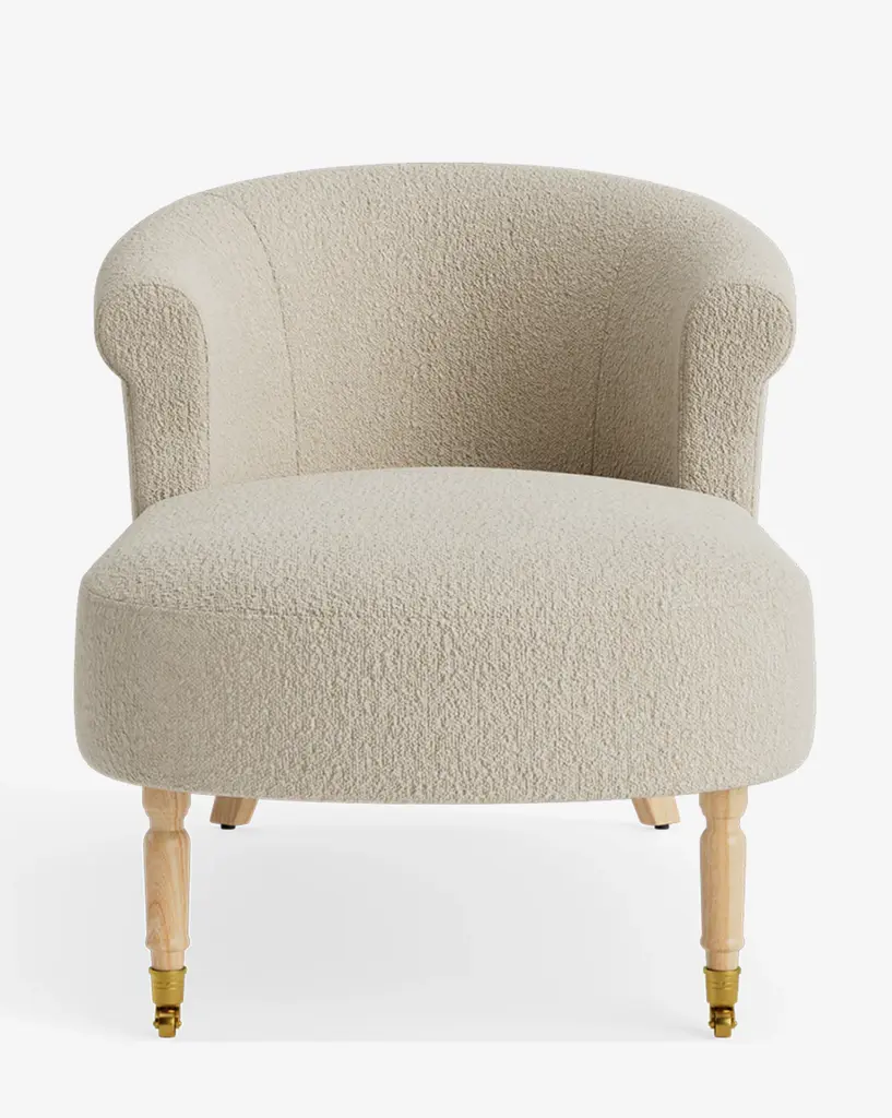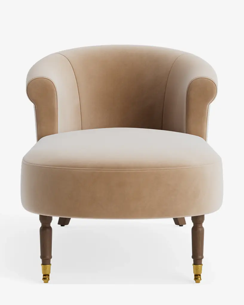 Crafted with timeless design and comfort in mind, our Clemence Chaise brings together the best of form and function. With a rounded back, turned legs and castors, the chaise features traditional elements for a classic feel. Customize this made-to-order piece with an Oak or Chestnut finish and your choice of an array of designer fabrics.