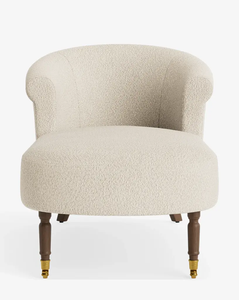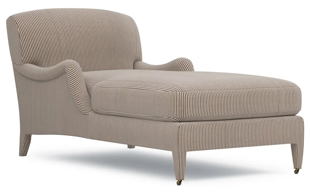 Crafted with timeless design and comfort in mind, our Clemence Chaise brings together the best of form and function. With a rounded back, turned legs and castors, the chaise features traditional elements for a classic feel. Customize this made-to-order piece with an Oak or Chestnut finish and your choice of an array of designer fabrics.