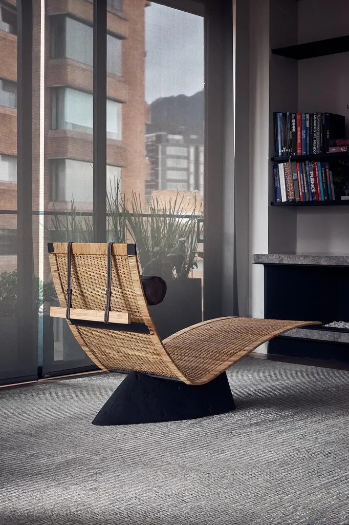 Chaise Longue Cherlon by Camilo Andres Rodriguez Marquez (aka CarmWorks)Rattan / Burnt wood or naturalEach piece is made to order and hand crafted by the artist.Dimensions: H. 84 x 152 x 65 cm--Camilo Andres Rodriguez Marquez is a Colombian born designer with a degree in Industrial Design from Colombia (FUAC) and Mexico (UNAM). He is fascinated by photography and cinematography, and intends to unify these two artistic expressions into his design in the form of narrative, projecting and communicating the interaction between the world and his objects. In his visits to several places in Mexico, such as San Juan Chamula in the sierra of Chiapas, Tzintzuntzan in Michoacán or Real de Catorce in San Luis Potosí, he was exposed to experiences that provided him with the awareness of how traditions, storytelling and rituals play an important role on how humans interpret their reality and our role in the universe.CarmWorks is a response to this exploration, on shaping people’s lives by suggesting a broader sensibility and providing a story to tell with these objects.