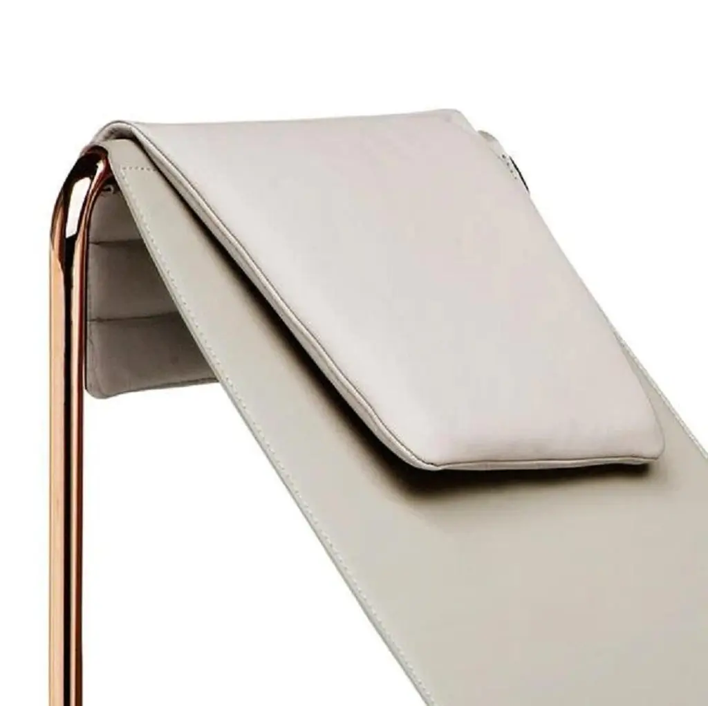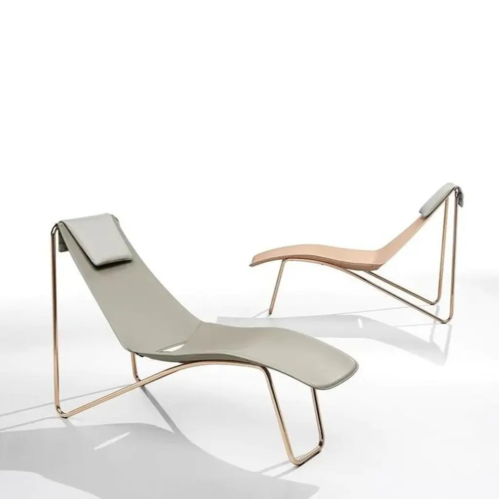 This chaise longue is crafted from steel and leather of very high resistance and quality: high-end materials guarantee the necessary flexibility while meeting high production requirements. Available removable headrest cushion in fiore leather.Materials: Sled base in lacquered steelSeat and backrest in hide.Available upholstered in various fabrics, leather or C.O.M.Dimensions:Width 56 cm 22.05"Depth 140 cm 55.12"Height 94 cm 37.01"Seat Height 34 cm 13.39"Contact us to enquire about COM/COL production, requirements and material shipping instructions.We will be glad to check with the factory’s technical team if sizes, finishes, and colors can be customized. We do our best to expedite production and to ship and deliver product within the listed lead time, however current lead times might be longer due to global shipping backlog and delays. These delays are out of our control and cannot be a reason to cancel an order.