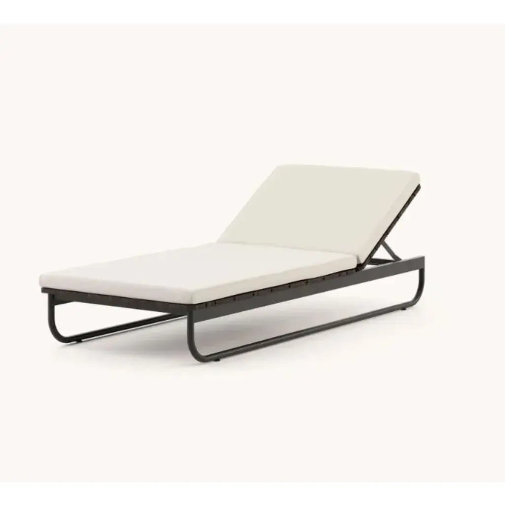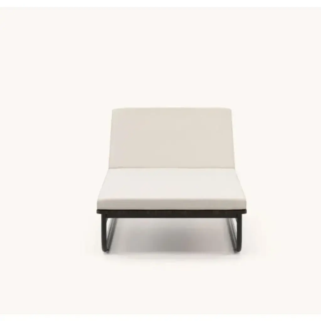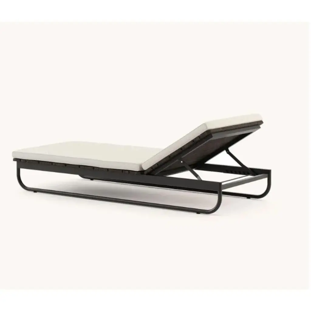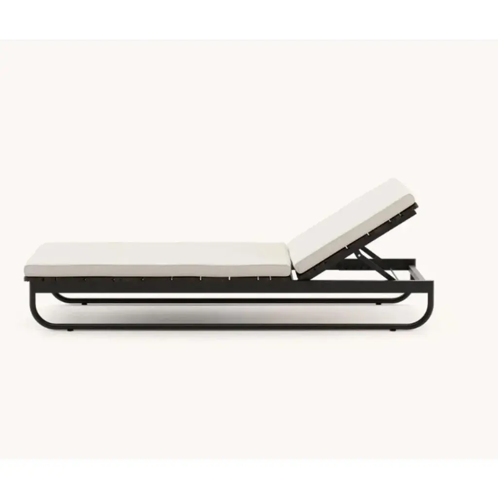 Copacabana Lounger by Domkapa Materials: black texturized stainless steel, bamboo wood, fabric (Rhine Ice). Dimensions: W 203 x D 85 x H 33.5 cm. Also available in different materials. Your garden will provide you moments of comfort for its minimalistic design and serenity with Copacabana Lounger. This design is essential for moments of well-being while you enjoy the open air as its comfortable seat is incorporated into a fusion of exquisite materials. with a steel structure that doesn’t oxidize, Copacabana Lounger is the perfect piece for every outdoor, improving your quality of life and your design.