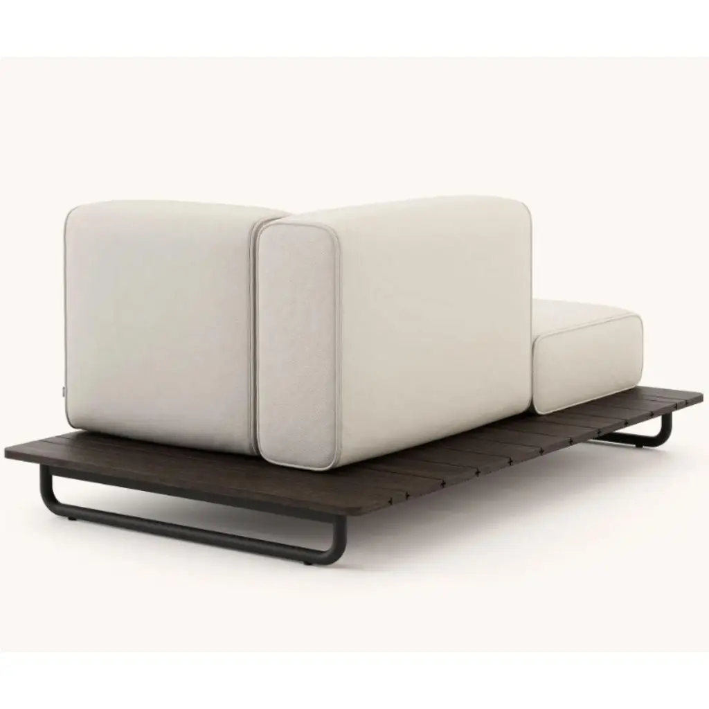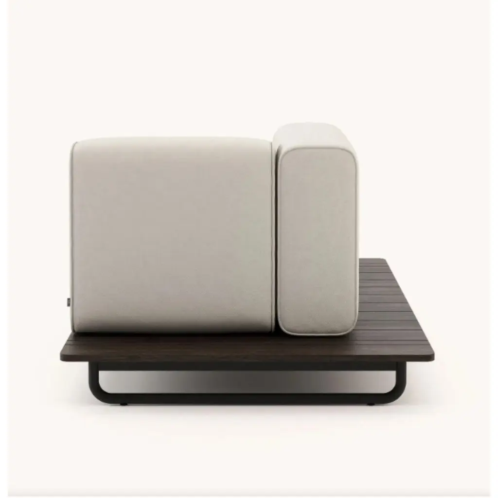 Copacabana chaise right by DomkapaMaterials: Black texturized steel, bamboo wood, fabric (Rhine Ice).Dimensions: W 165 x D 105 x H 75 cm.Also available in different materials.Copacabana Chaise Longue has the unique power to influence your mood. For its serenity and comfort, this is a must-have piece for happier summers. Available with right or left back and armrest support, you can fit this piece wherever you want.Domkapa holds a tremendous passion for detailed stitching, presenting several similarities to the haute-couture philosophy focused on the value of a “made by hand”. Based in Portugal, Domkapa was founded in 2009 as a Private Label. The long and fruitful path, full of experience and achievements inspired the brand’s new identity and independence, in 2017.Domkapa challenges its team to create the perfect daily meeting between design and comfort in each piece of the brand’s collections. Our design team works side by side with the production, and this organic synergy allows the creation of innovative designs.