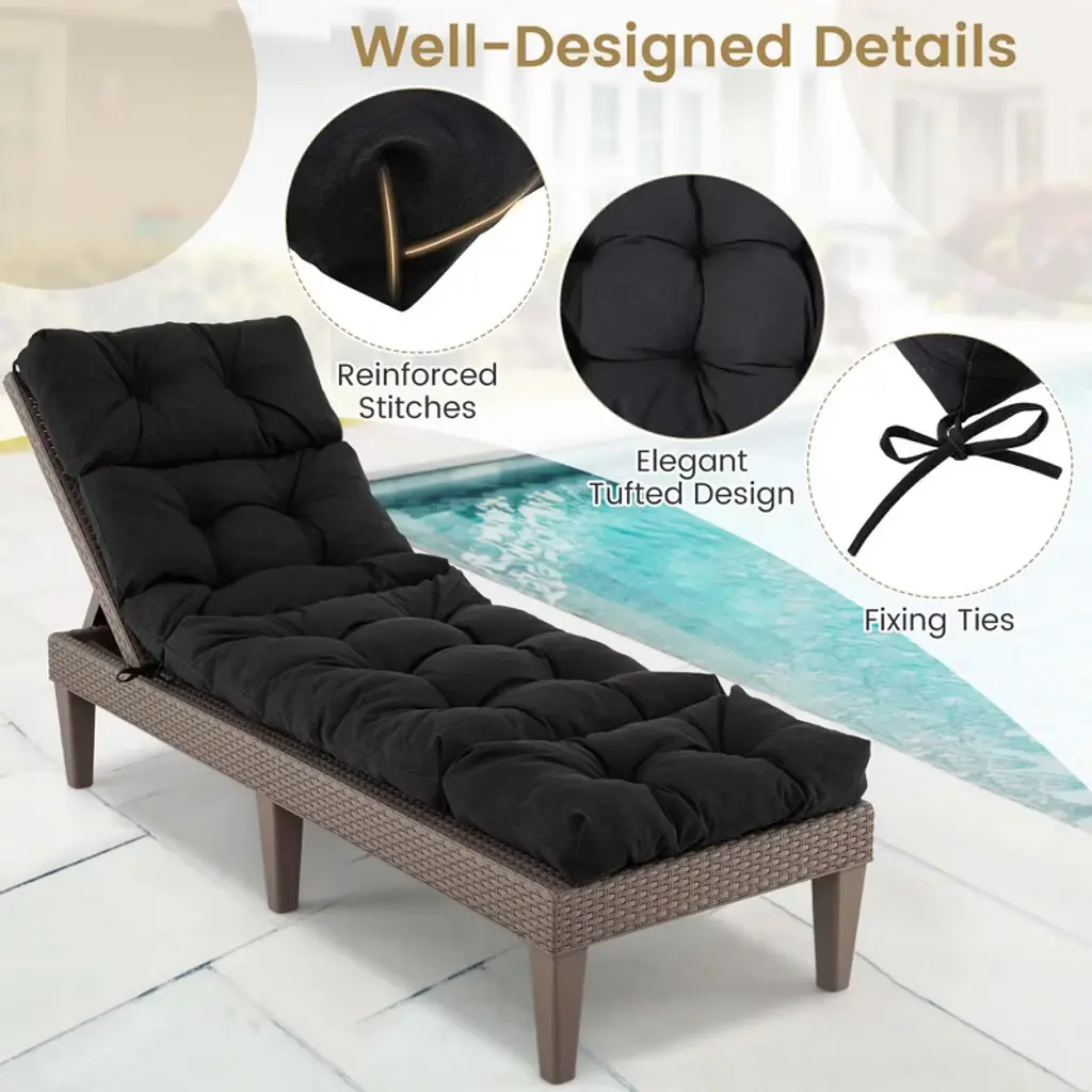 Costway 2 Pcs 73" Lounge Chaise Cushion Padded Recliner Cushion Indoor Outdoor Black