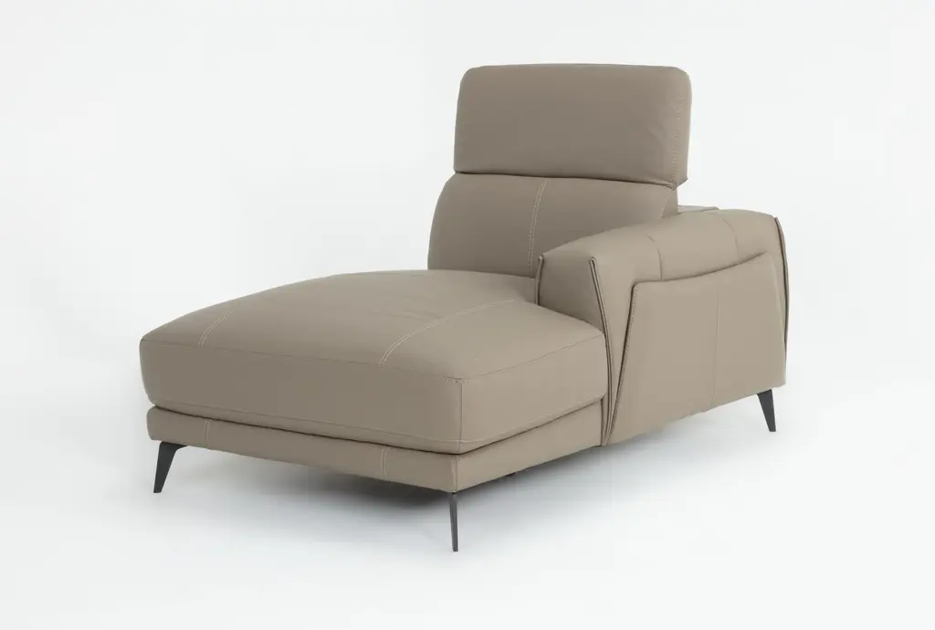 Cullen Taupe Beige Leather Right Arm Facing Chaise With Adjustable Headrest