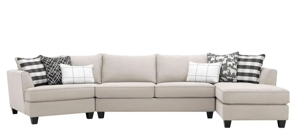 For a living room with style, comfort and spacious seating, the Daine collection will satisfy your needs. This sectional features upholstery that's both versatile and trendy. And, when it comes to comfort, Daine delivers with its huge seating area and extra accent pillows. With all these great features, you're in for a well-balanced room with character.