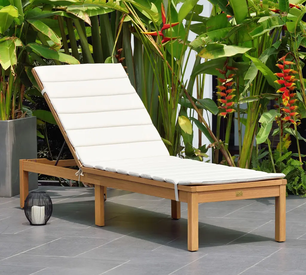 Catch some sun in this sleek, modern chaise. Crafted of solid, teak-finished FSC® wood, its clean lines and slim silhouette is designed with four recline positions for personalized comfort.