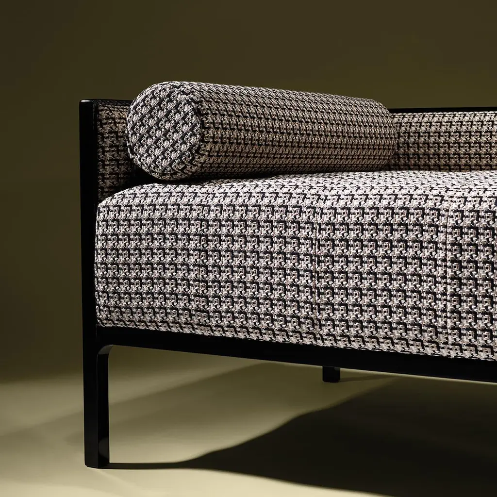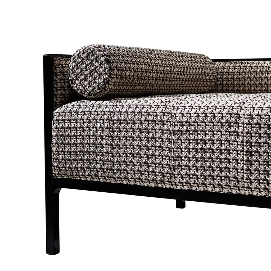 Chaise lounge in black glossy lacquer and jacquard (DEDAR Fabric in Images) Customer fabrics quantity: 6m.Bespoke / CustomizableIdentical shapes with different sizes and finishings.All RAL colors available. (Mate / Half Gloss / Gloss)