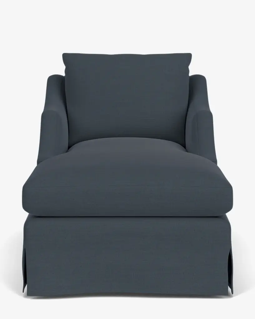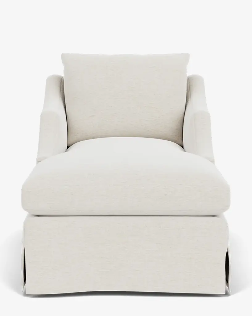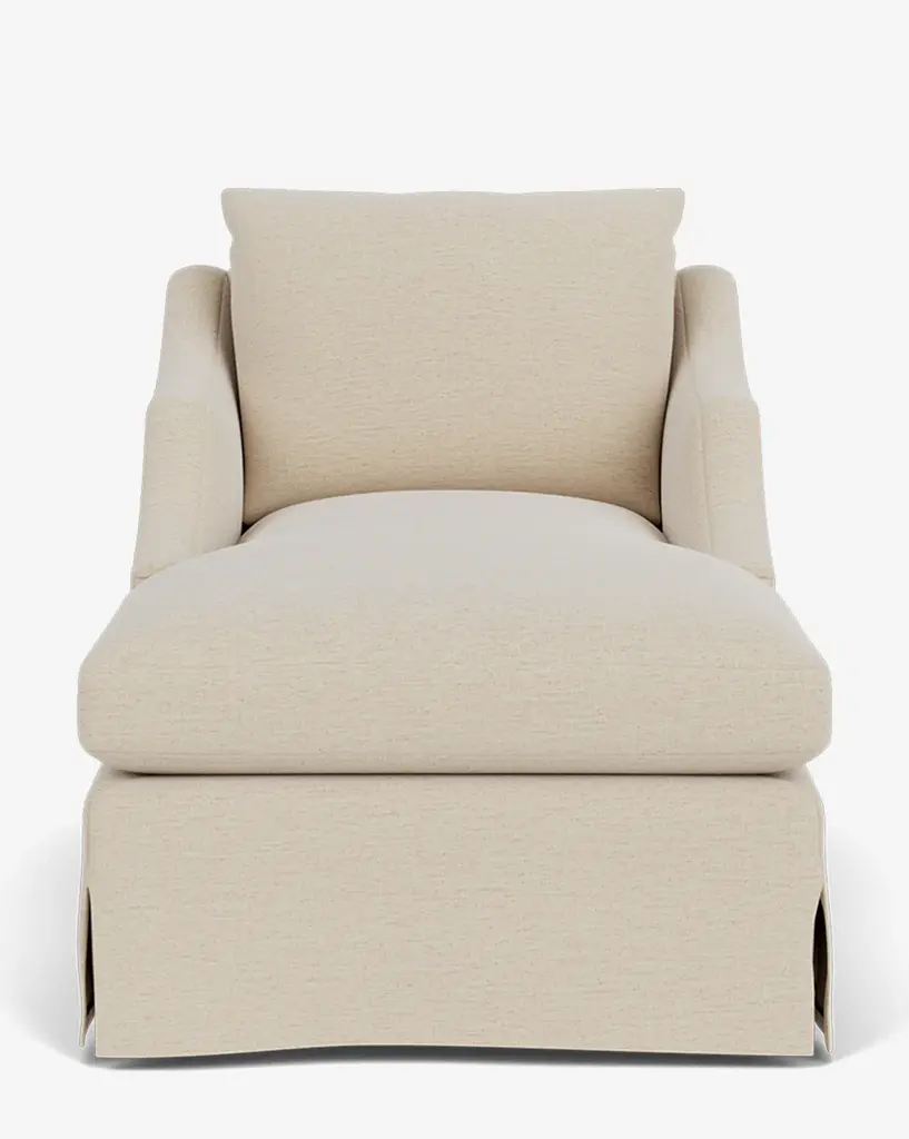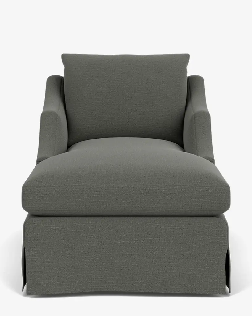 Streamlined, but with classic details, the Everleigh Chaise gives new meaning to traditional meets modern. An eye-catching arm detail enhances the simple form for a look that is sure to elevate your space. With a frame crafted from kiln-dried solid oak and foam-wrapped cushions with a layer of down and feather for a luxurious experience, this chaise is hard to beat. Customizable in a wide array of fabrics, this chaise will blend seamlessly with existing design.