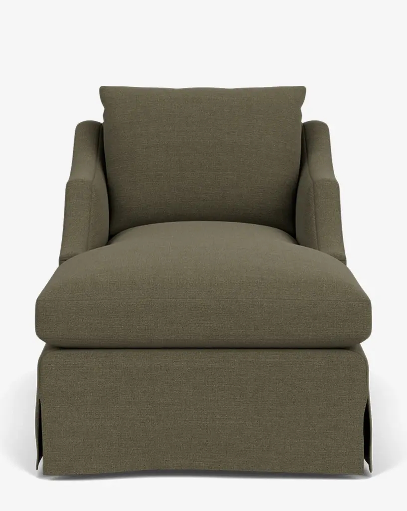 Streamlined, but with classic details, the Everleigh Chaise gives new meaning to traditional meets modern. An eye-catching arm detail enhances the simple form for a look that is sure to elevate your space. With a frame crafted from kiln-dried solid oak and foam-wrapped cushions with a layer of down and feather for a luxurious experience, this chaise is hard to beat. Customizable in a wide array of fabrics, this chaise will blend seamlessly with existing design.