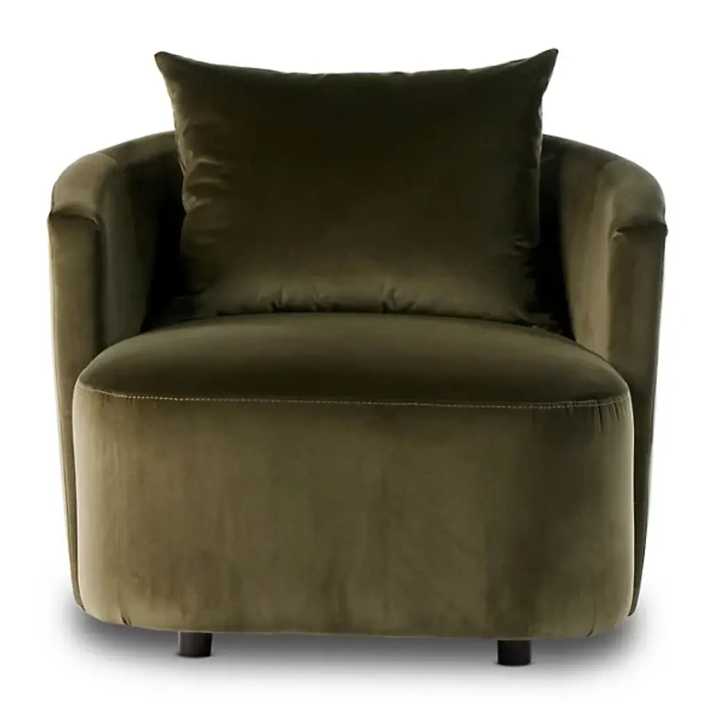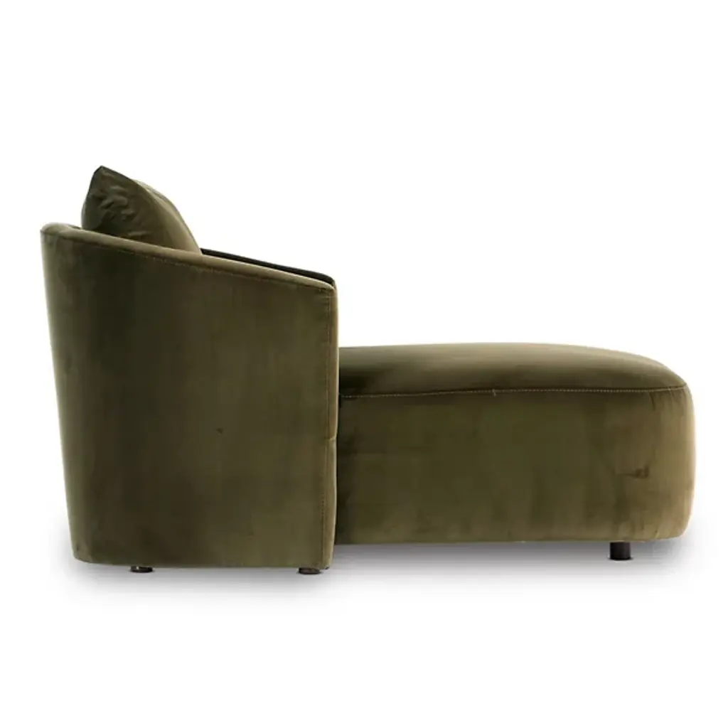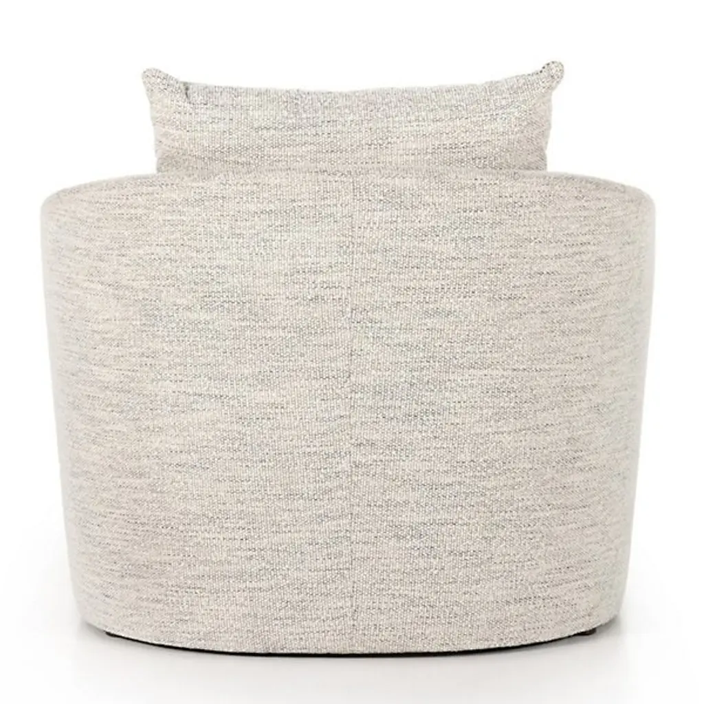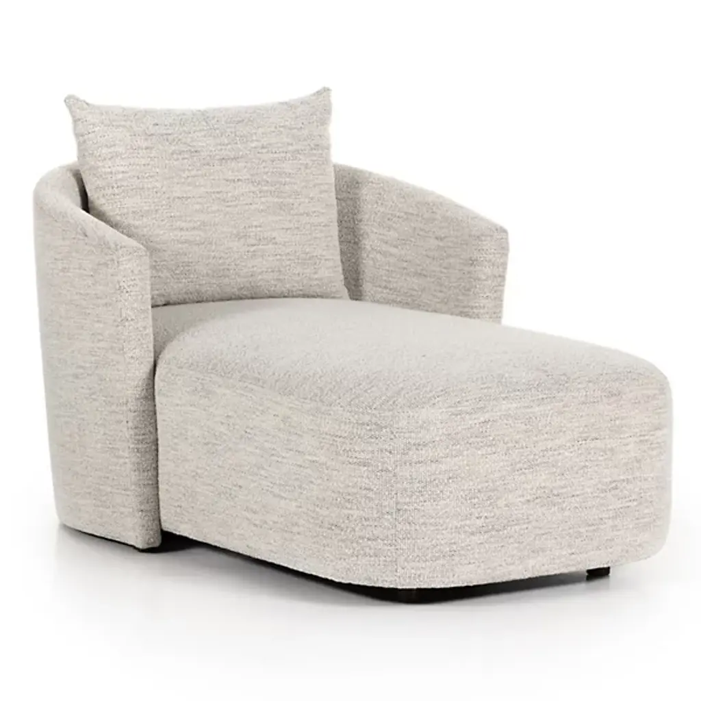 The Farrah Chaise Lounge from Four Hands embraces minimalism and ease. Its rounded form invites relaxation, while the swivel base adds functionality. The piece features a single cushion design, creating a sleek and uncluttered look. The chaise's compact size allows it to fit comfortably in various spaces, from cozy reading nooks to spacious living rooms. Its neutral upholstery ensures versatility in different design schemes. The Farrah Chaise Lounge combines modern aesthetics with practical design, offering a comfortable retreat for reading, lounging, or simply unwinding after a long day.