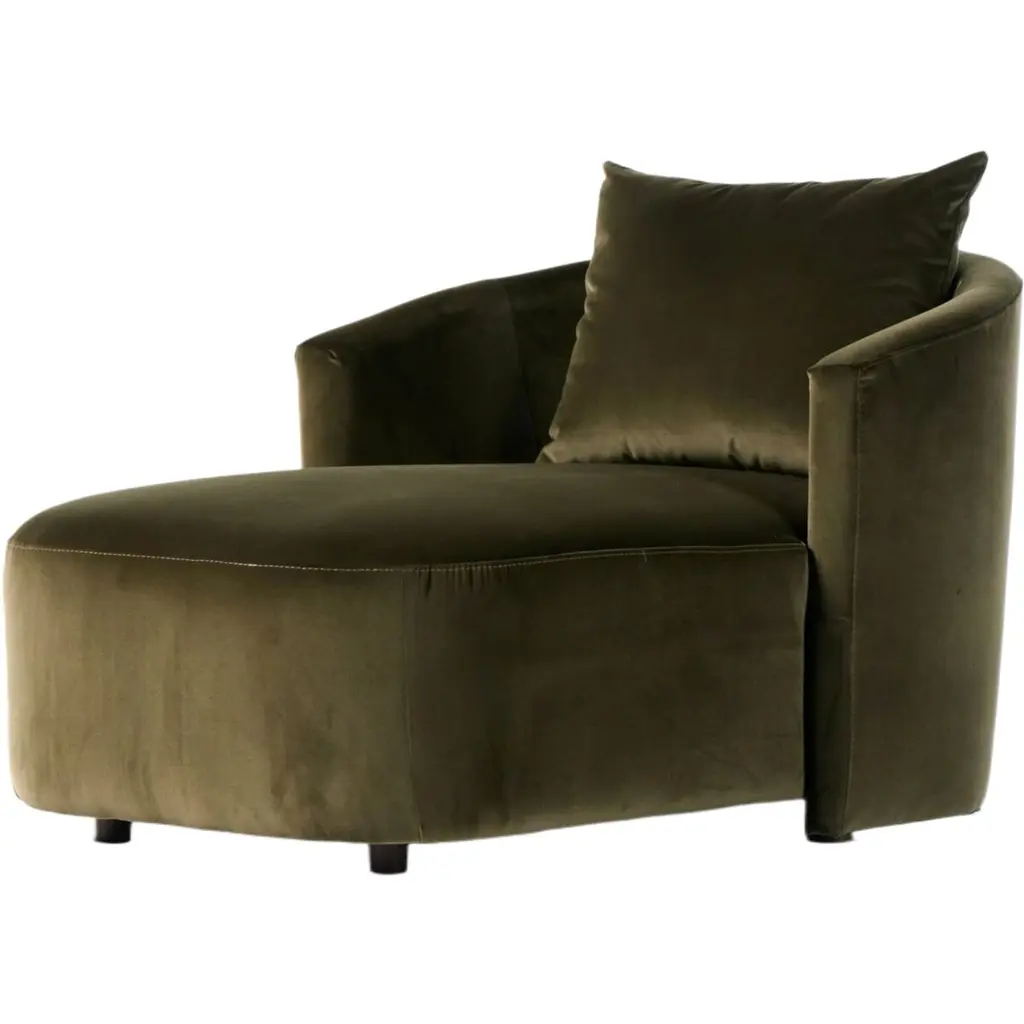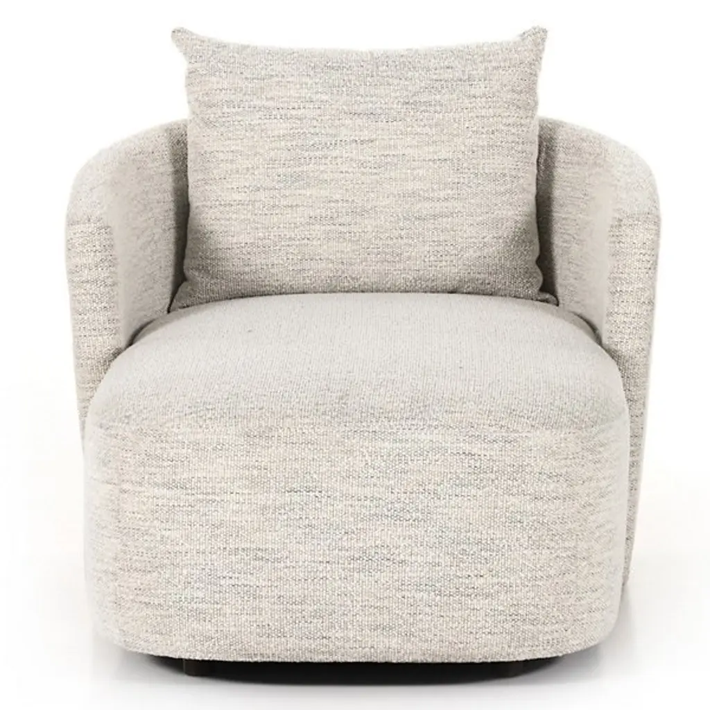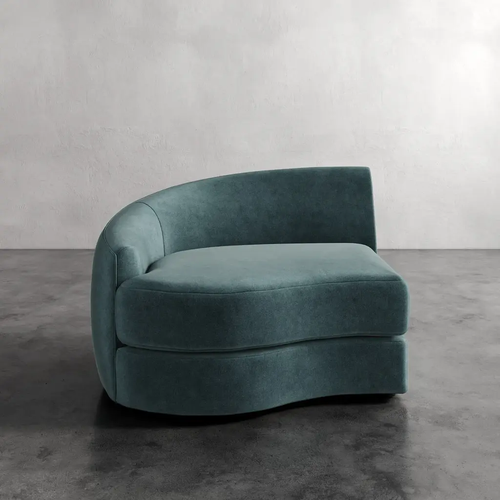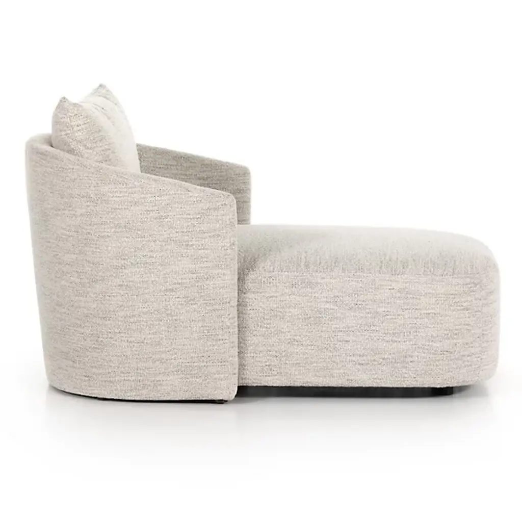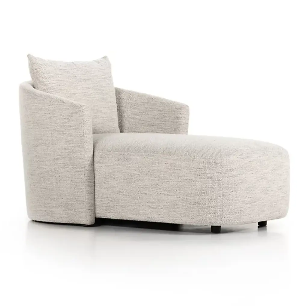 The Farrah Chaise Lounge from Four Hands embraces minimalism and ease. Its rounded form invites relaxation, while the swivel base adds functionality. The piece features a single cushion design, creating a sleek and uncluttered look. The chaise's compact size allows it to fit comfortably in various spaces, from cozy reading nooks to spacious living rooms. Its neutral upholstery ensures versatility in different design schemes. The Farrah Chaise Lounge combines modern aesthetics with practical design, offering a comfortable retreat for reading, lounging, or simply unwinding after a long day.