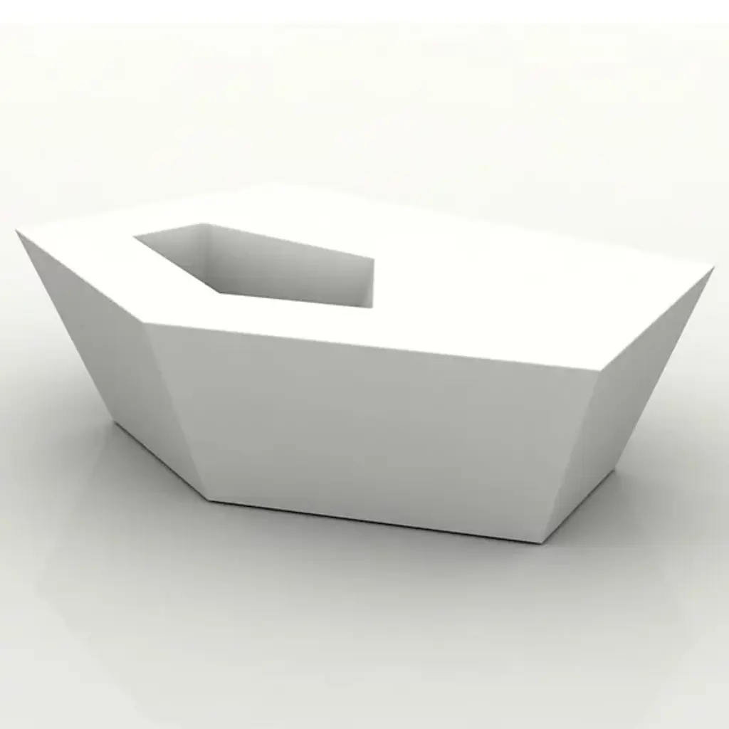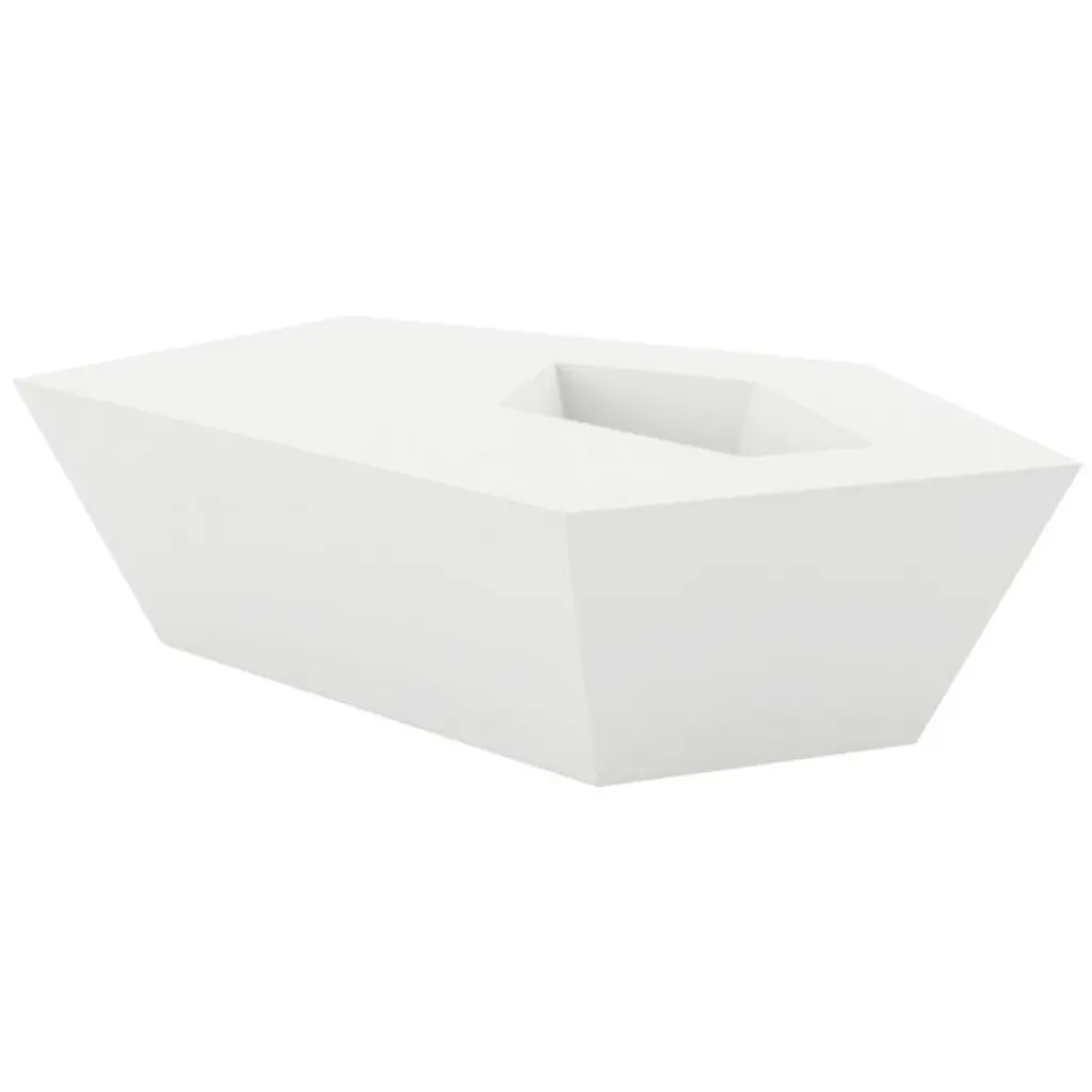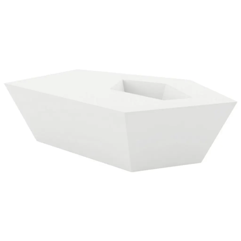 The Vondom Faz Sun Chaise Table has the perfect proportions to complement the low Faz Sun Chaise. This angular little side table is made entirely out of rotation molded polyethylene in a smooth matte White color. A unique cavity molded into the table top is put to great use as a small planter or impromptu ice bucket.