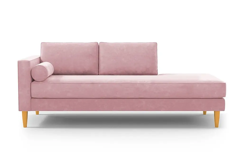 "Flag" Couch And Chaise Longue In Light Pink Velvet And Wood Feet In Small Size