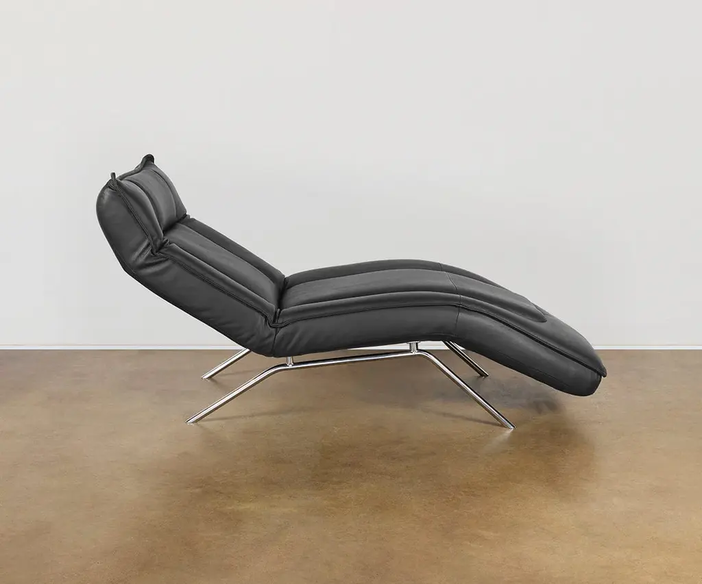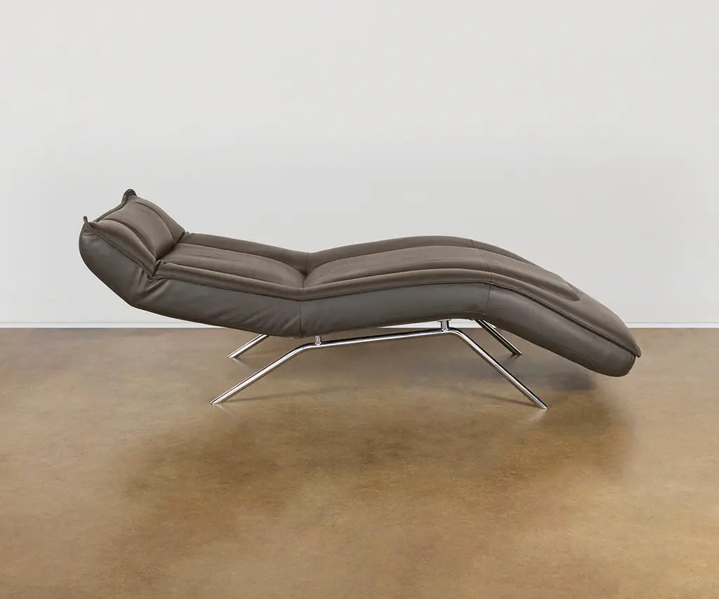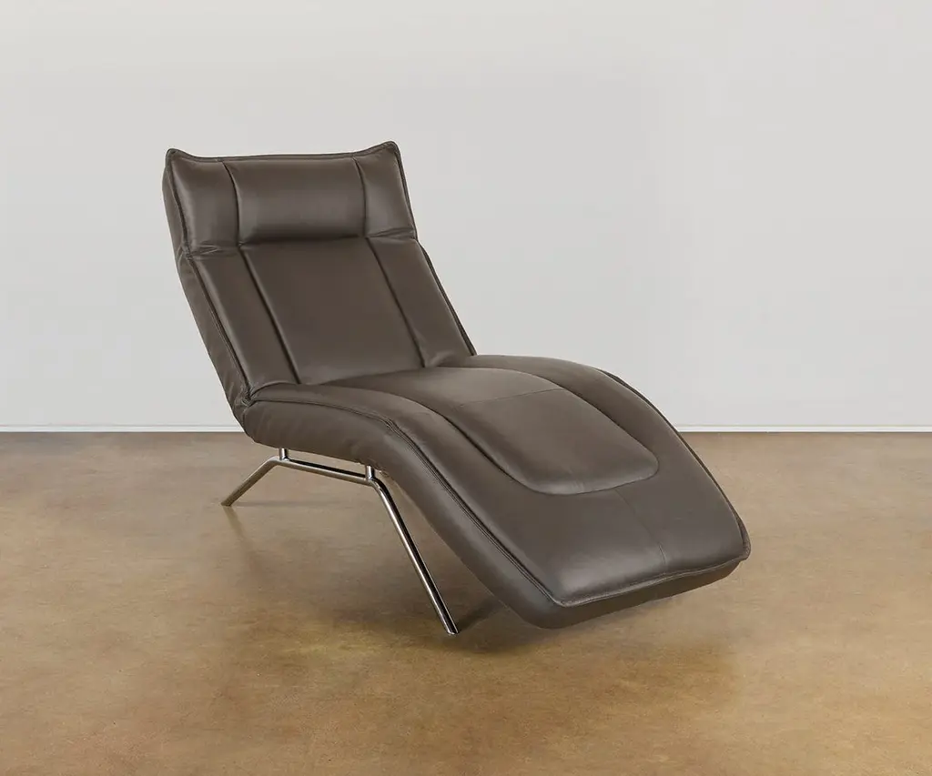 Finished in premium top-grain leather, the luxe Forte Chaise features a slim profile and easy, adjustable reclining for customized lounging. It's a modern essential that works seamlessly in nearly any space. Natural characteristics in the leather may change over time, making each piece one-of-a-kind.