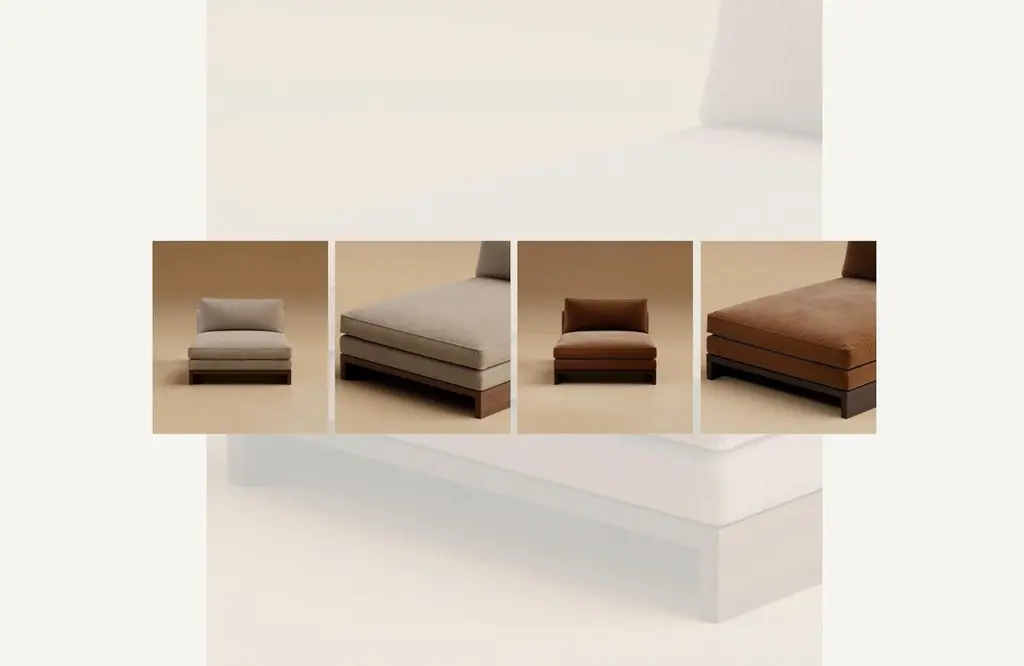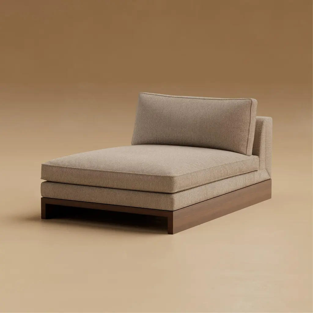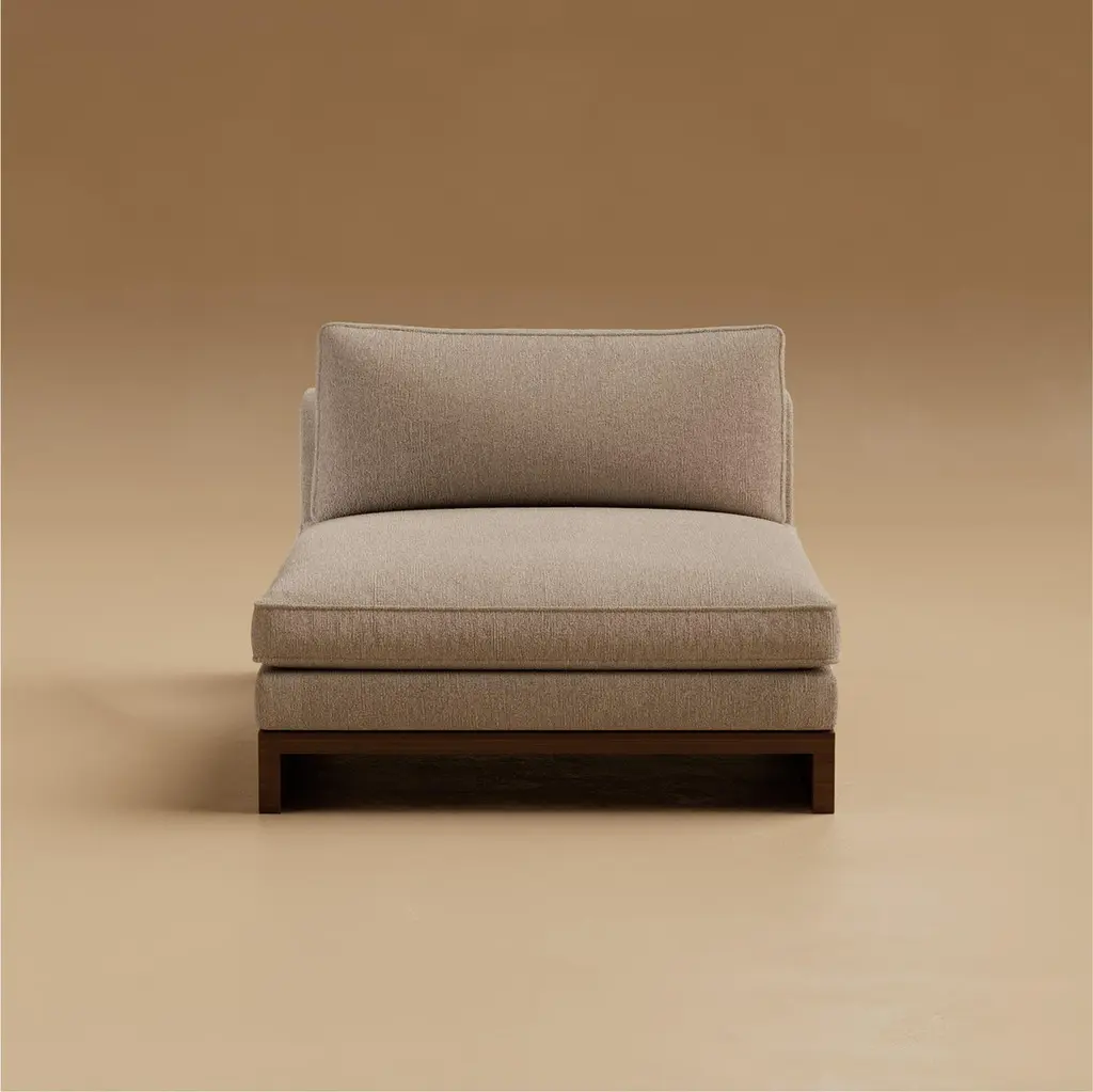 The Grant Armless Chaise is designed as an elongated gesture of rest, generous in scale yet calm in proportion. Down-wrapped cushioning provides a plush surface, while seamless tailoring underscores its quiet elegance. It is a piece meant for pause, whether alone or as part of a larger composition.The chaise’s modular form allows it to adapt with ease, extending the language of the Grant system into new configurations. Walnut accents and subtle notch detailing carry the architectural clarity of the collection, grounding its softness in sculptural form. Produced in numbered editions, it is furniture with the permanence of craft and the intimacy of touch.The Grant Collection is Lusano’s foundation, a study of geometry, cabinetry traditions, and quiet sophistication. Born from the rhythm of paneled interiors and the discipline of old-world woodworking, the collection honors detail without ornament, permanence without weight. It is furniture designed not just to fill a room, but to give it clarity.Founded in Los Angeles with European roots, Lusano merges old-world craftsmanship with contemporary restraint. Influenced by Italian heritage and Scandinavian minimalism, each sculptural piece reflects an architectural approach: precise, soulful, and enduring. With reverence for materials and detail, our collections are designed to live beautifully and shape the way we inhabit space, inviting quiet moments, meaningful use, and beauty that deepens over time.Pricing is quoted COM/COL - Does not include fabric or leather costs.DetailsYear: 2025Origin: Handcrafted in Los AngelesSerial Number & Certificate: Provided with each pieceEdition: Numbered EditionCustomization: Available (+10% upcharge, lead time 12–15 weeks)Materials: Shown in Natural Walnut with COM/COL upholsteryUpholstery Requirements: 5 yards COM / 90 sq. ft. COLFinish Options: Available in Natural Walnut or Ebonized WalnutNote: Given the nature of wood, each piece will vary in appearance.