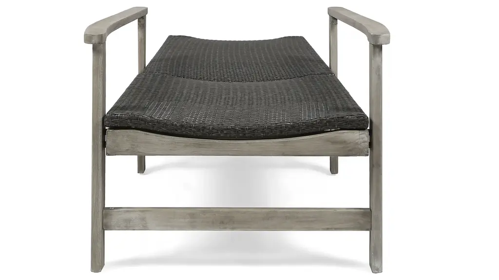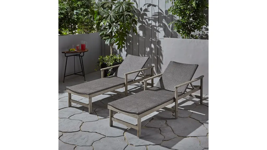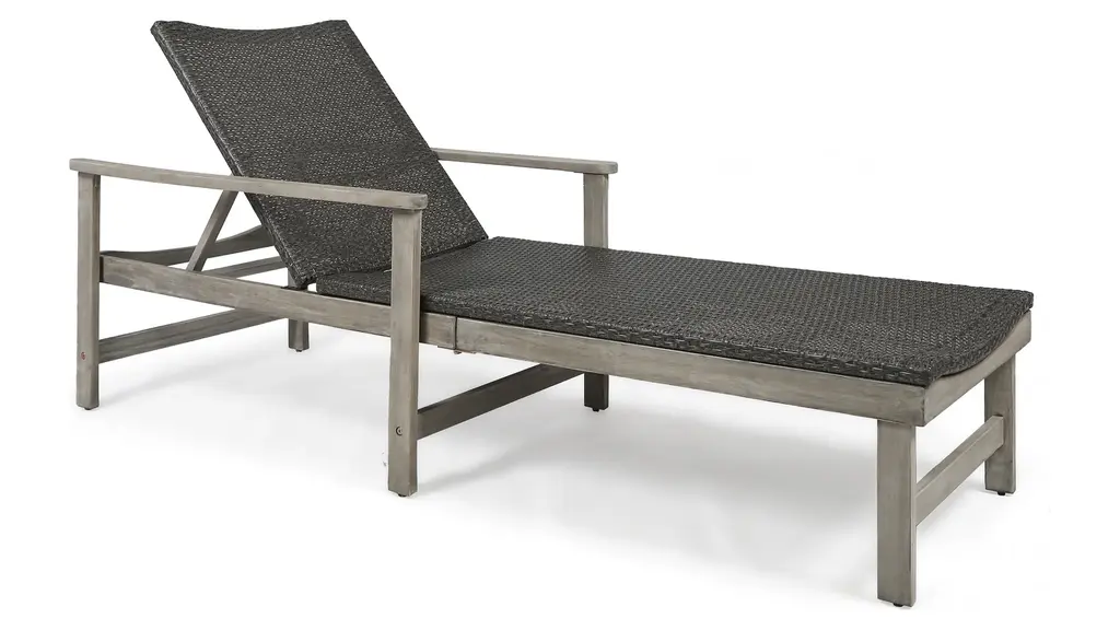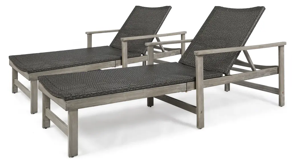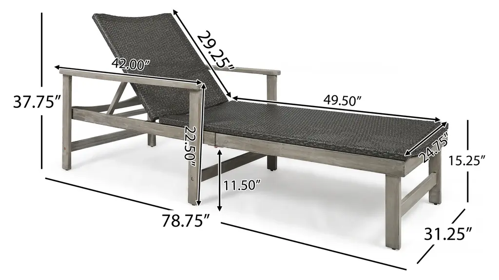 Make your weekends greater by spending relaxing afternoons in the warm sunshine. Our set of two chaise lounges features rich acacia wood frames that is complemented by wicker seating. The wicker finish features a unique distressed texture that adds a touch of rugged beauty. Boasting an adjustable feature that accommodates up to five different positions, this set allows you to kick back and relax in the great outdoors.DISTRESSED FINISH: The purposely-worn texture gives the wicker-finished seating an added sense of depth and unique richness.ACACIA WOOD FRAME: This durable hardwood is a solid, heavy frame that naturally withstands the elements and resists wear and tear.ADJUSTABLE WITH ARMRESTS: Each lounge offers adjustable seating to ensure maximum comfort. This accommodates five different positions, including a fully reclined option. Finished with expertly placed armrests, you can rest your arms in absolute comfort.WEATHER RESISTANT: This set is designed and tested to resist mild weather conditions. We always advise covering, storing, or providing other protection to our furniture in the event of heavy or repeated exposure to the elements, including water and UV rays.DIMENSIONS: Each chaise lounge is 31.25'' W x 78.75'' D x 37.75'' H and reclines to 15.25 inches high. This comes as a set of two.Includes: Two (2) Chaise LoungesMaterial: Faux RattanFrame Material: Acacia Wood and IronMultiple Color OptionsAssembly RequiredDimensions: 78.75 inches deep x 31.25 inches wide x 37.75 inches highSeat Dimensions: 49.50 inches deep x 24.75 inches wide x 15.25 inches highArm Height: 22.50 inchesWeight Capacity: 600 lbs