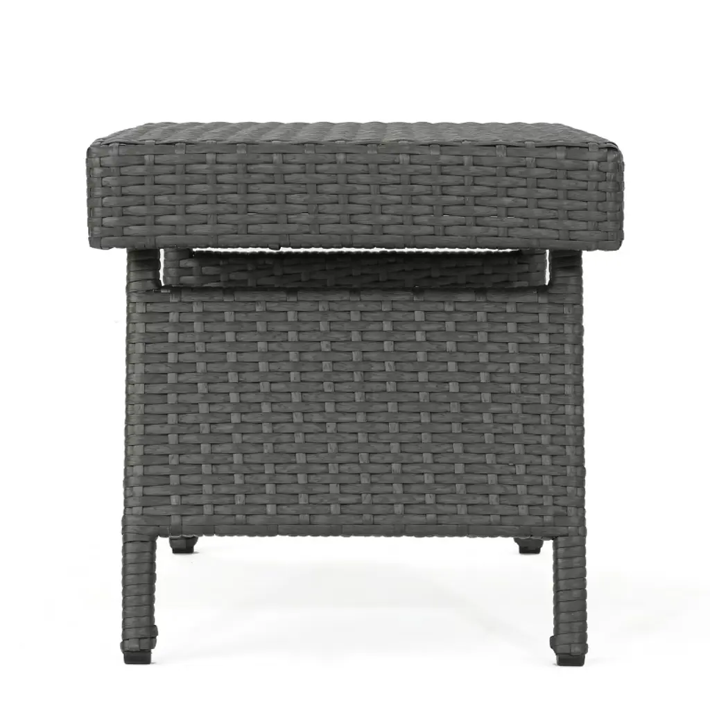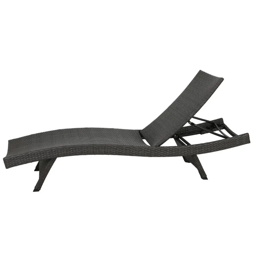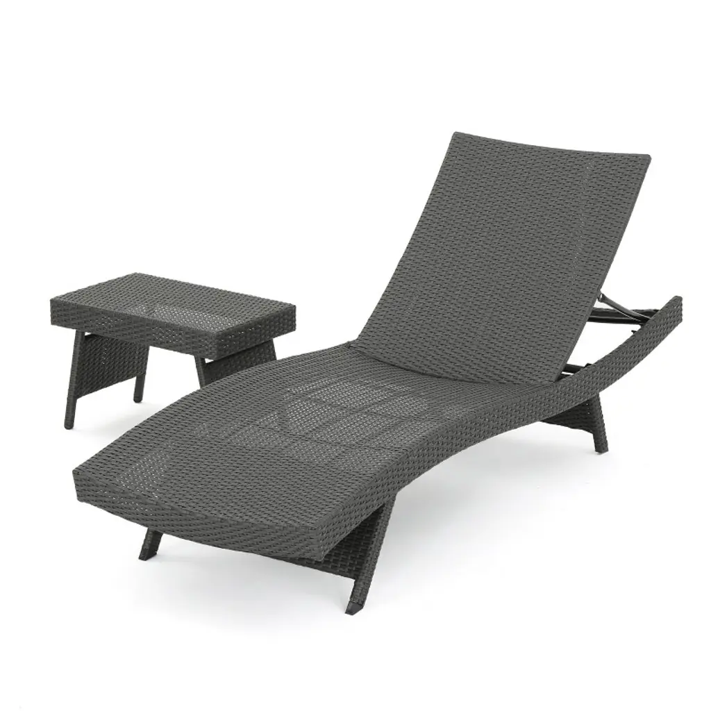 Gdfstudio Olivia Outdoor Wicker Folding Armless Adjustable Chaise Lounge And Table Set, Gray