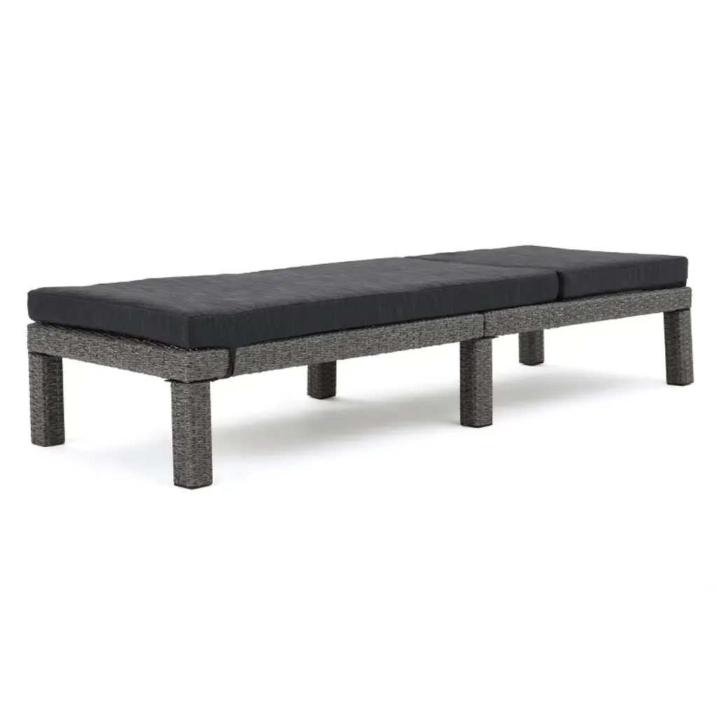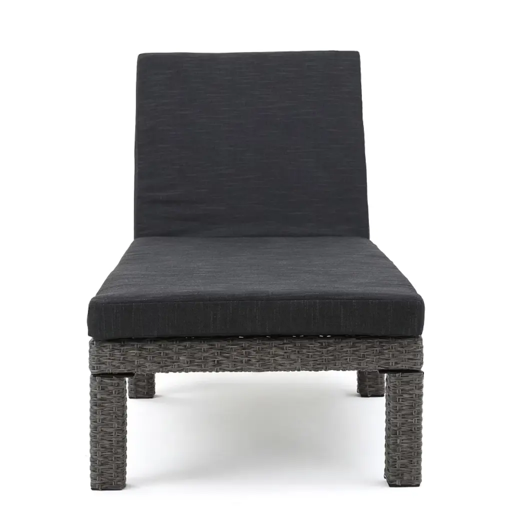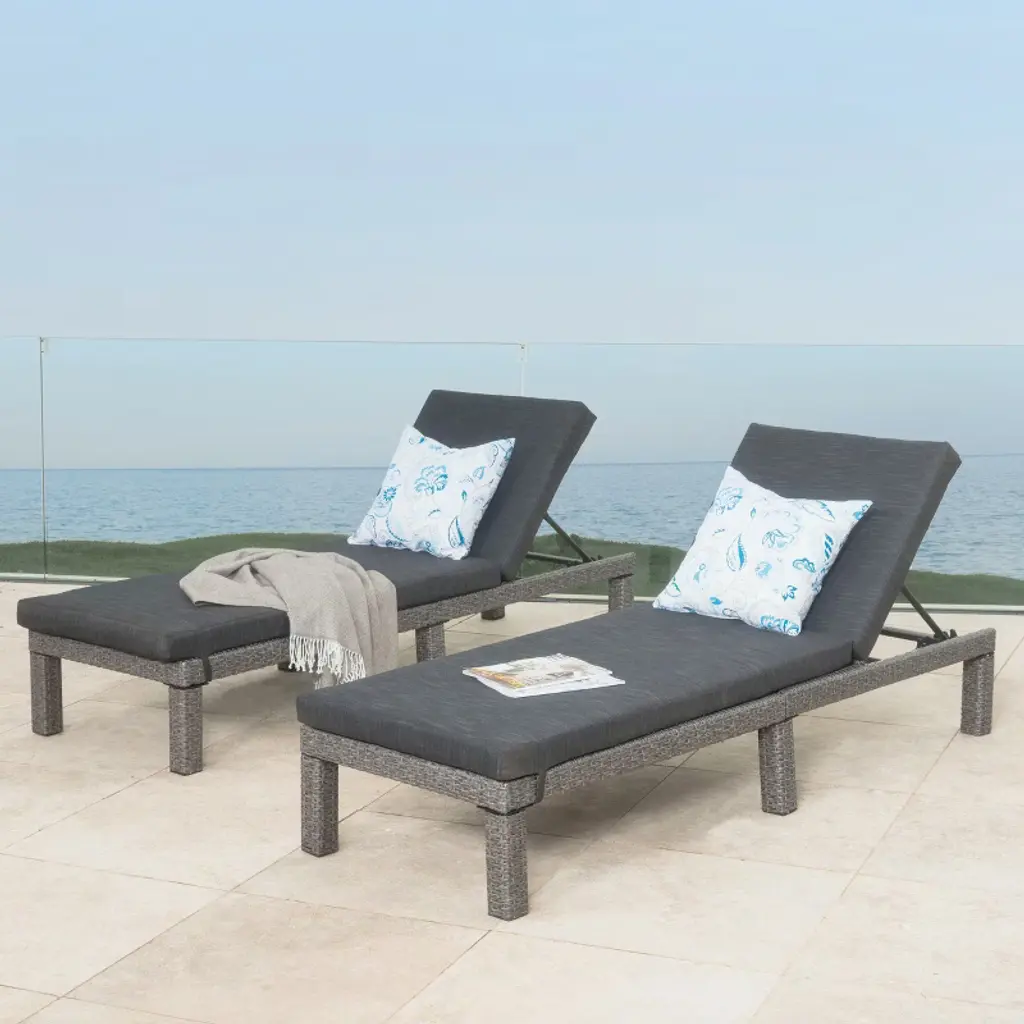 Gdfstudio Venice Outdoor Wicker Armless Adjustable Chaise Lounges With Cushion (Set Of 2), Dark Gray/black
