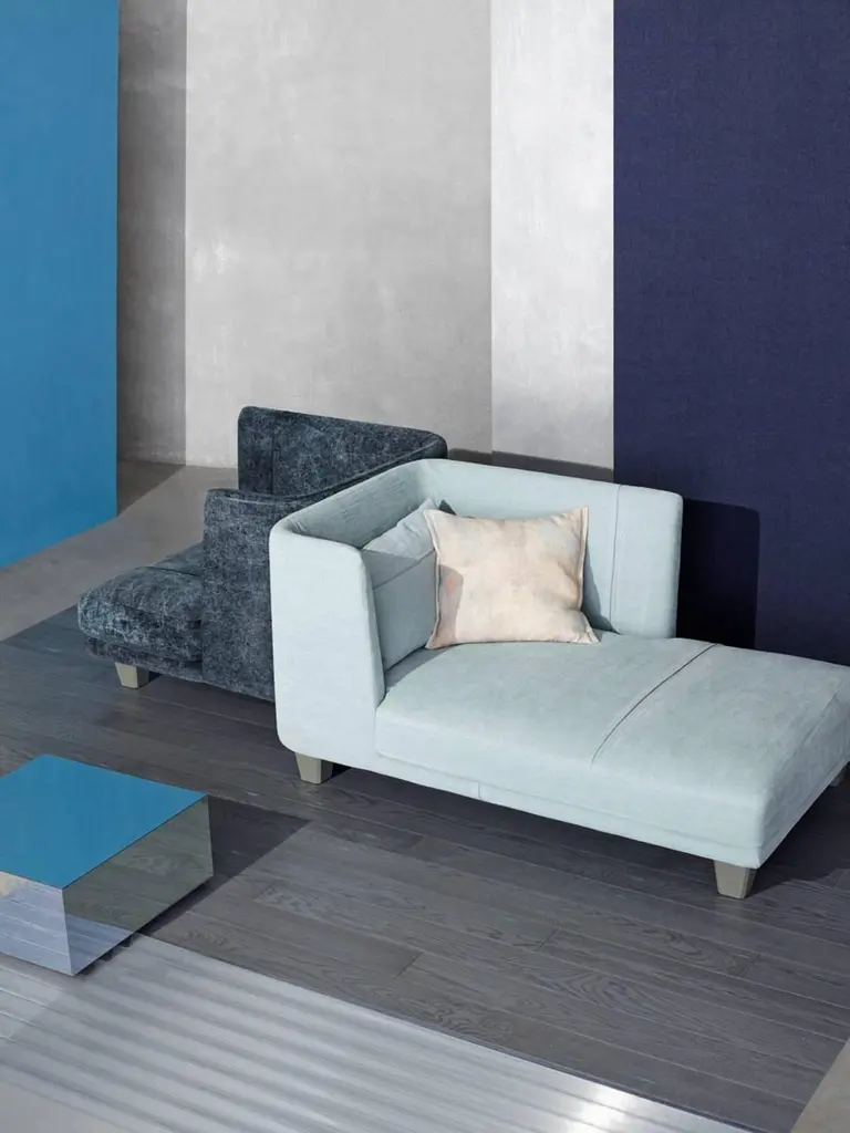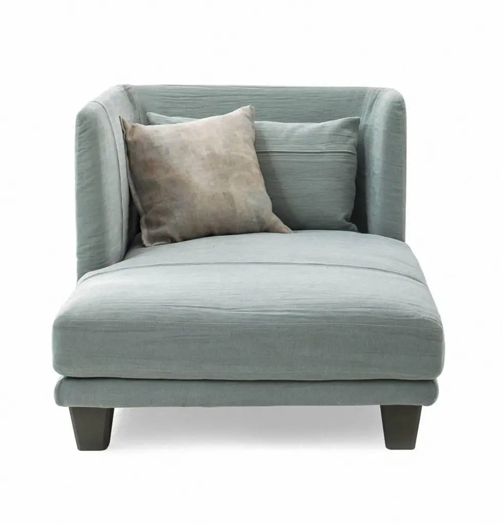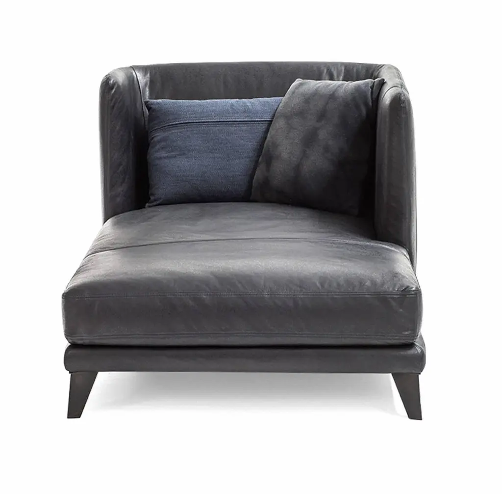 "Gimme More" is a left or right chaise longue, designed by Diesel Creative Team and manufactured by Moroso, featuring elements in stress-resistant polyurethane foam in varied densities and polyester fiber on wood frame, feet in varnished ash or steel screwed to structure and seat cushion in polyurethane foam and polyester fiber or in goose down. Gimme More collection has removable covers. Recommended covers: cotton, linen, velvet, leathers cat.T and cat.Z. Indoor use only.Dimensions: D. 66.1", W. 39.4", H. 33.5", Seat H. 15"Moroso, with Diesel, has created a collection of products with a relaxed and comfortable mood, taking its inspiration from an informal lifestyle concept and targeting consumers who like simple shapes yet at the same time seek a “modern” style made up of high quality combined with a distinctive design of pure lines.“We worked with the Diesel creative team to develop an interesting and alternative collection idea which was to represent two different yet coexisting aspects of certain contemporary trends: one which is darker in tone, inspired by the underground world and with a more aggressive and enigmatic aesthetic, and the other lighter, inspired by nature and a visual radiance, with soft and welcoming shapes”, explained Patrizia Moroso who always follows all the phases of every design project personally.