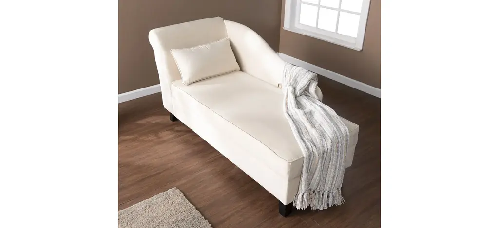 Giorgia Storage Chaise provides cozy comfort while you read a book or take an afternoon nap, offering functional seating in a contemporary design. A hidden storage compartment tucks away extra blankets or toys underneath a spacious seat, while the included pillow gives you additional comfort and support. Let your worries float away when you relax on this chaise sofa with storage.