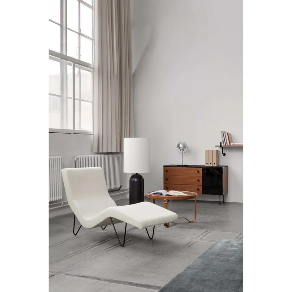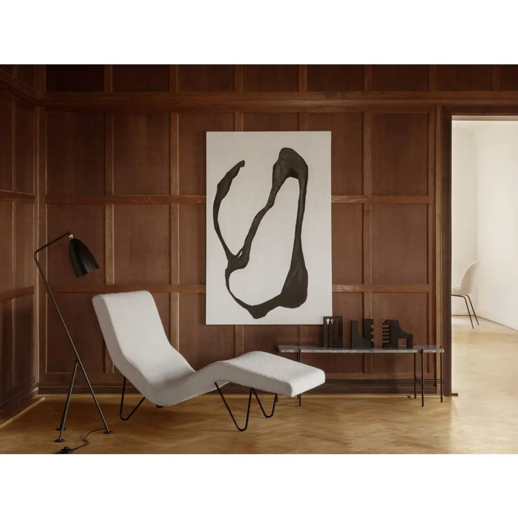 GUBI’s GMG Chaise Longue was designed by Greta M. Grossman in 1951. The GMG Chaise Longue combines Scandinavian design traditions with American influences – Swedish-born Grossman was inspired by the light and open living spaces of Southern California. Resting on sleek metal legs, the flowingly shaped seat mirrors the body’s natural curves and adds a relaxed feeling to any living room, lobby or reading nook. Typical to Grossman’s work, the GMG Chaise Longue is at the same time refined and full of character.