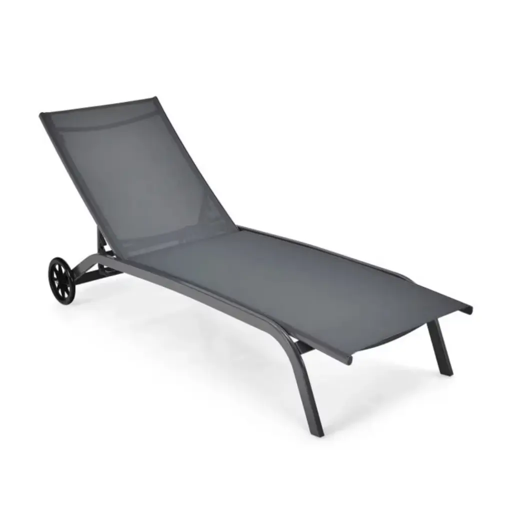 Gray 6-poisition Adjustable Outdoor Chaise Recliner With Wheels