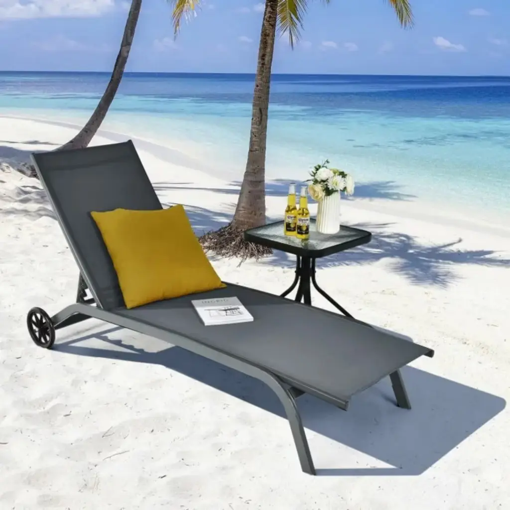 The steel frame builds a sturdy fortress, and the six-level adjustable backrest unlocks comfortable postures. When the breathable and quick-drying fabric meets the flexibility of two wheels, this chaise lounge turns every outdoor corner into an exclusive haven of comfort, waiting for you to let go of fatigue and embrace leisurely moments.
