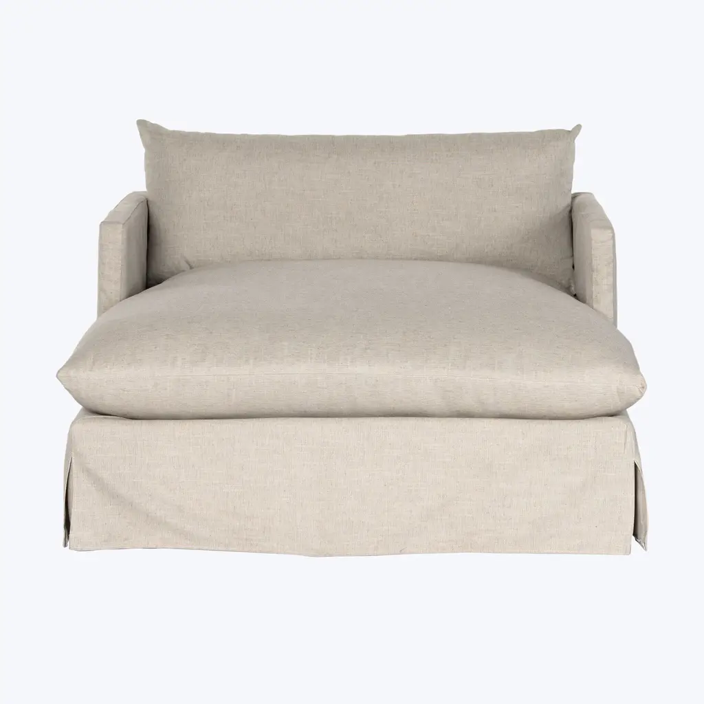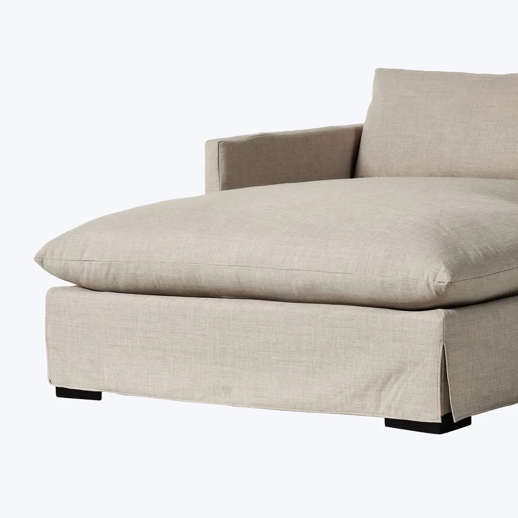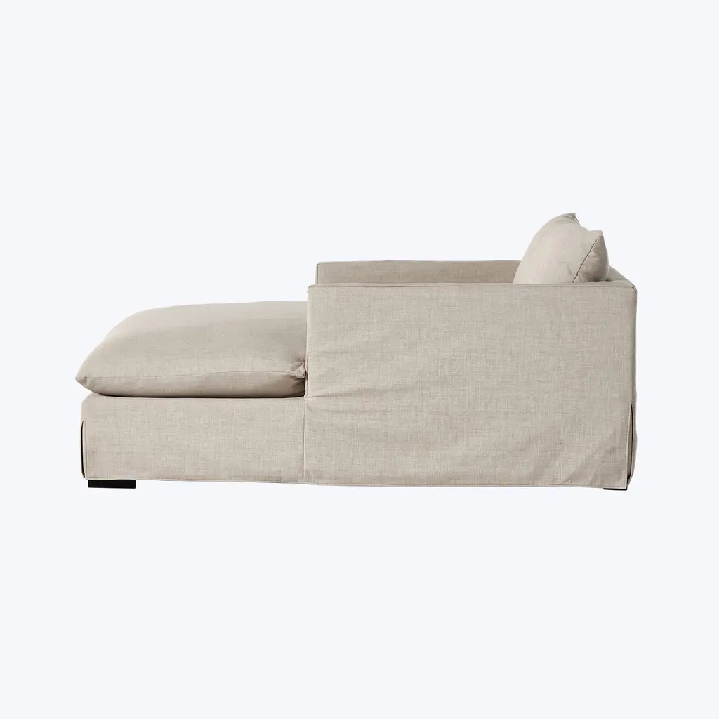 The Four Hands Habitat Chaise Lounge, measuring 48" W x 67.5" D x 32.5" H with a seat depth of 53" and a seat height of 20", is designed for the ultimate lounging experience. Upholstered in high-performance fabric and offered in two neutral colors, this chaise offers a luxurious yet durable surface, ideal for both relaxation and durability. The plush, pillow-inspired cushion and shelter arms provide both comfort and support, making it a perfect place to unwind after a long day.Crafted with performance fabrics made of 53% polyester, 35% viscose (rayon), and 12% flax/linen, it is designed to withstand spills, stains, and high traffic, ensuring long-term comfort. This chaise combines sophistication with practicality. Made in Mexico, it brings both luxury and durability to your space, offering a stylish and enduring piece for your home.