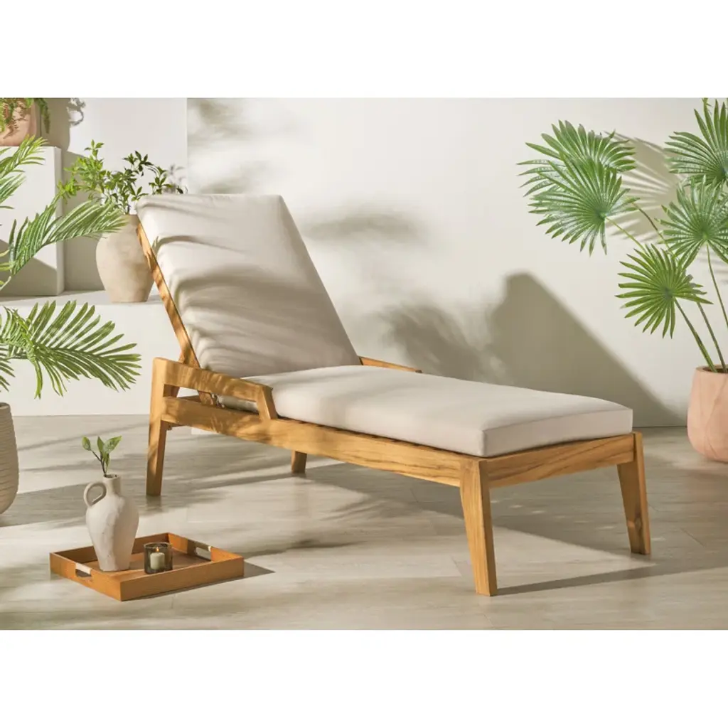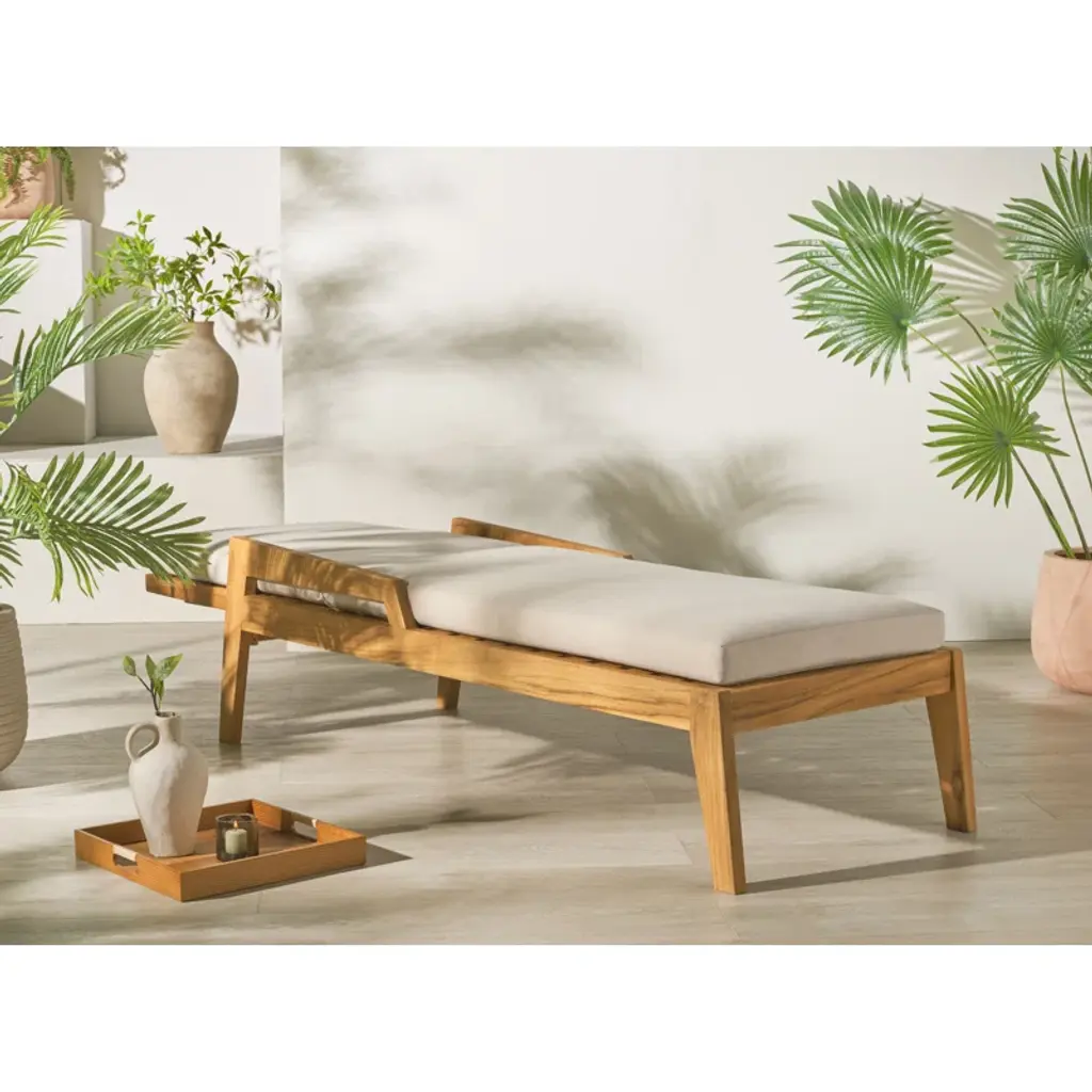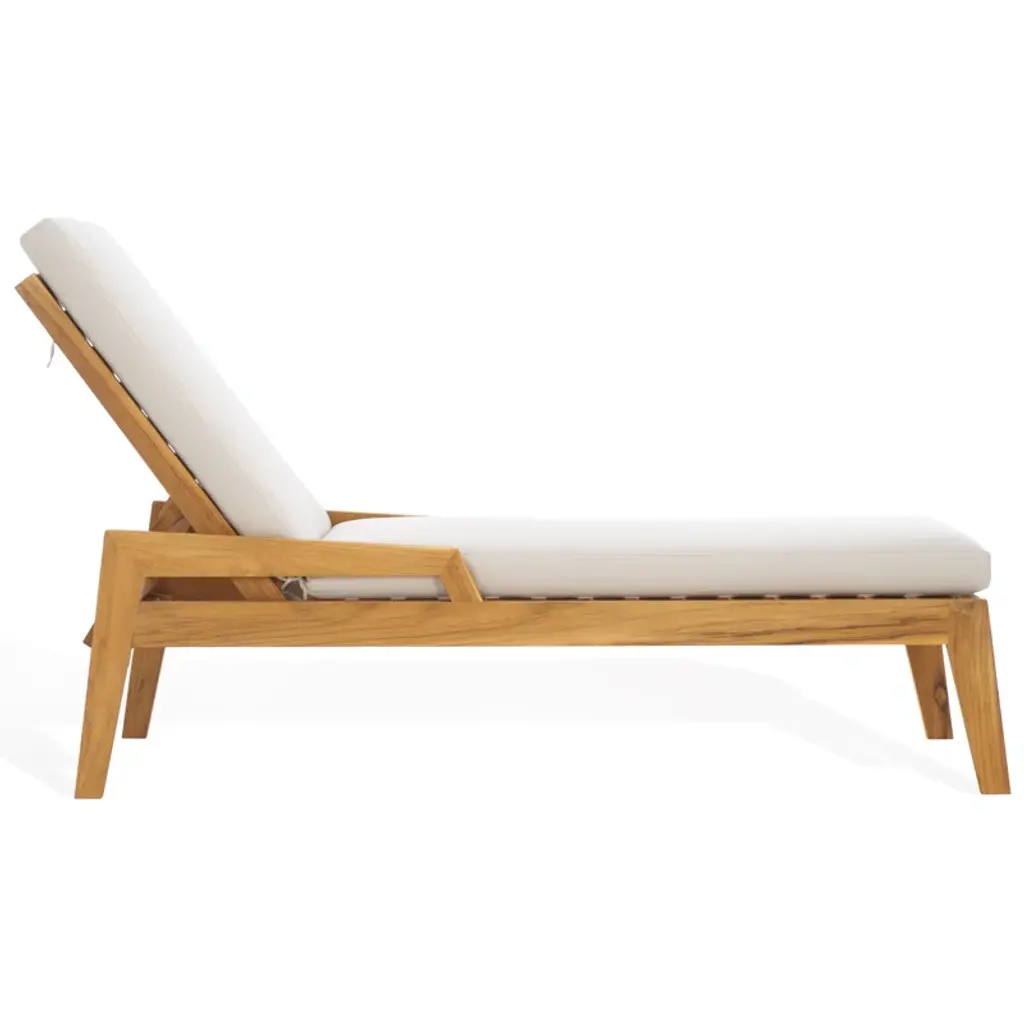 Experience the inviting allure of outdoor living with the Headly Brazilian Teak Chaise Lounge. This exquisite piece of furniture combines design flair with unmatched comfort to create the ideal relaxation spot for your outdoor space. Crafted from impressive Brazilian Teak wood, this chaise lounge can withstand the harshest weather conditions without compromising style. It’s not just sturdy but elegantly designed to be the centerpiece in any outdoor setting. The natural coloration of the wood, paired with a white Olefin fabric material, immediately gives your outdoor area a refreshing, chic look. The fabric, known for its durability and weather-resistant properties, adds an extra layer of comfort to the outdoor chaise lounge. Revel in your peaceful outdoor living space with the Headly Brazilian Teak Chaise Lounge – the epitome of sophistication and relaxed luxury.