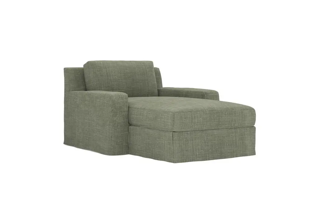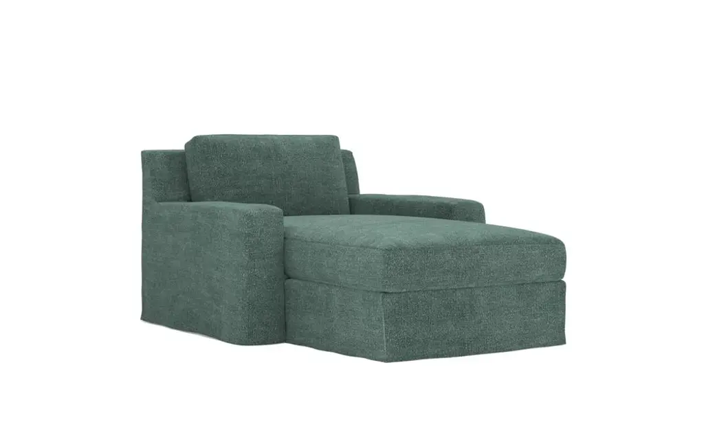 A Kathy Kuo Home exclusive, our Henri chaise pairs clean lines with sumptuous, UNBELIEVABLY COMFORTABLE cushioning. Made for quiet moments at home, cozying up to read a book has never felt so luxurious. Its tapered back, low track arms, and relaxed slipcover create a casually elegant silhouette. The seat cushion offers extraordinary comfort, with a foam core surrounded by a blend of feathers and duck down. Choose from a variety of slipcover options, including linen and performance fabrics.