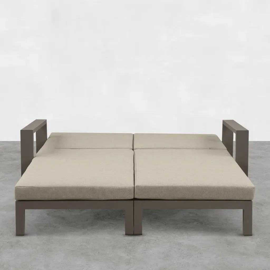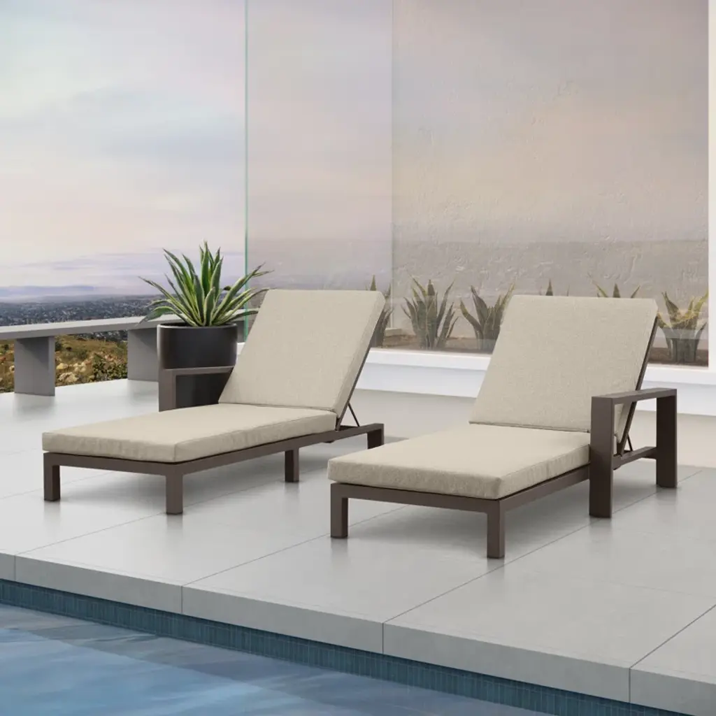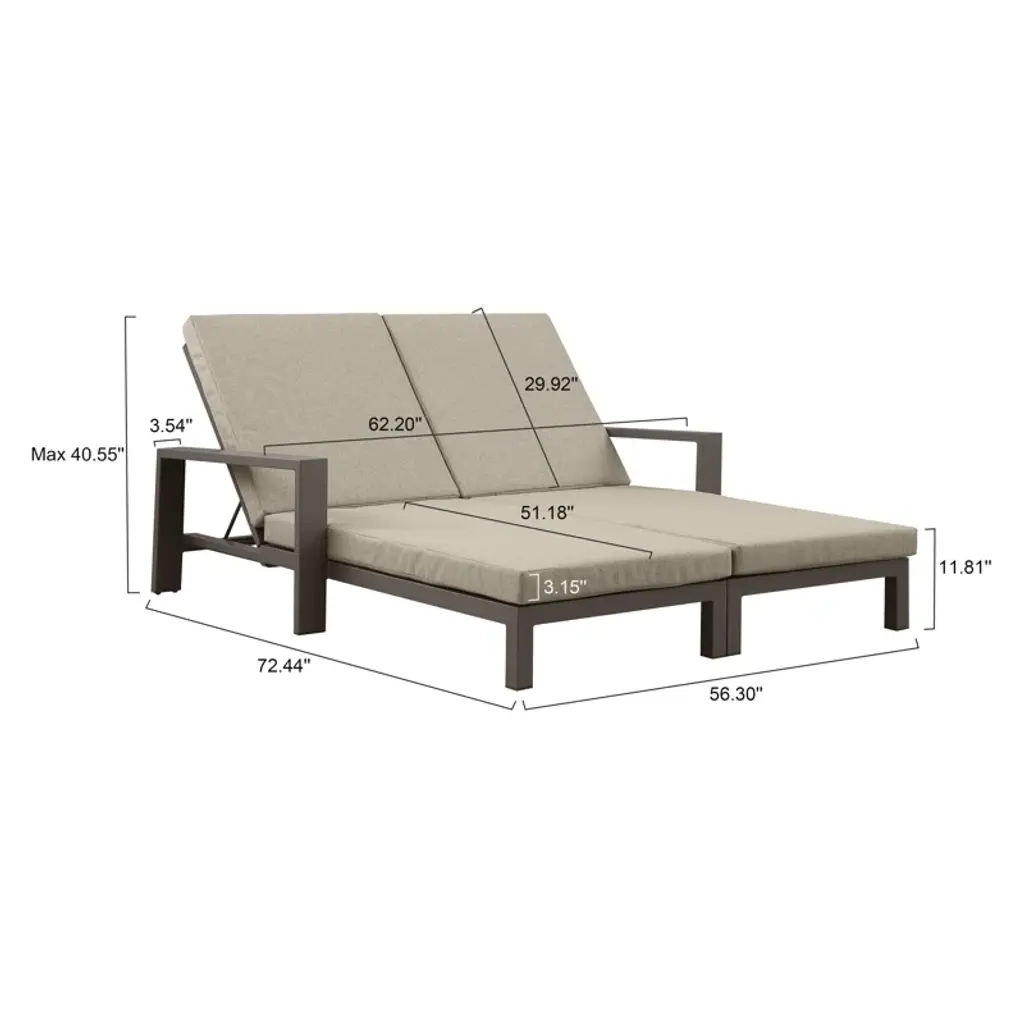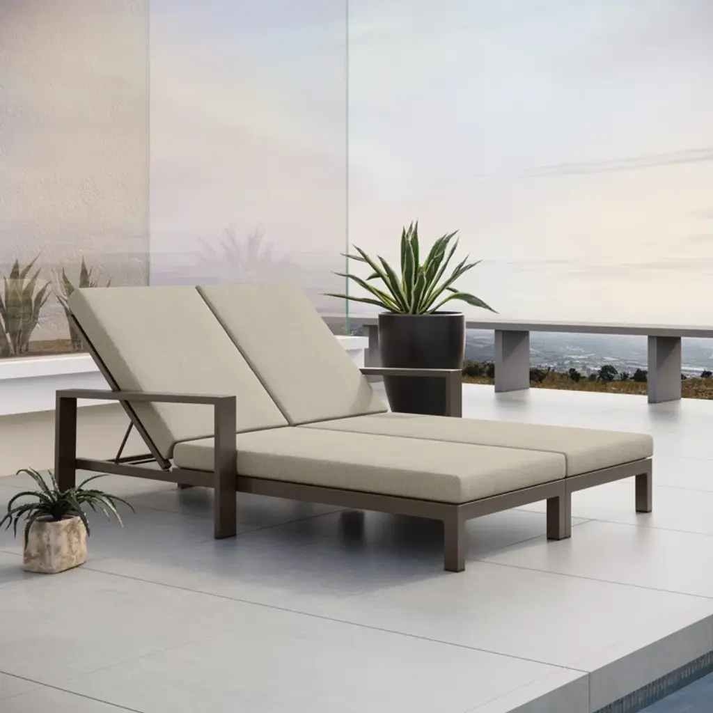 Whether you're soaking up the summer sun by yourself or entertaining friends alfresco, outdoor furniture is a must. This double-seating chaise features 5 adjustable positions, these low-profile pieces are perfect for sitting poolside or enjoying a backyard breeze as you snooze. You can simply separate the double-seat chaise into two (2) single seats. Crafted with an aluminum frame that's weather- and rust-resistant design features a plush fabric cushion that ensures maximum comfort. Available in 4 colors: Slate Black Frame with Grayish Cushion, Snow White Frame with Grayish Cushion, Silver Gray Frame with Grayish Cushion, and Bronze Frame with Khaki (Textured Two-Tone Linen) Cushion.