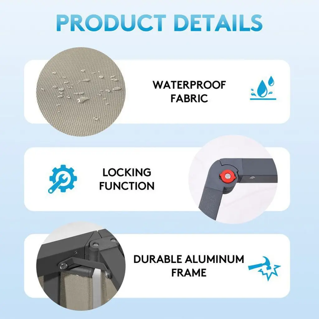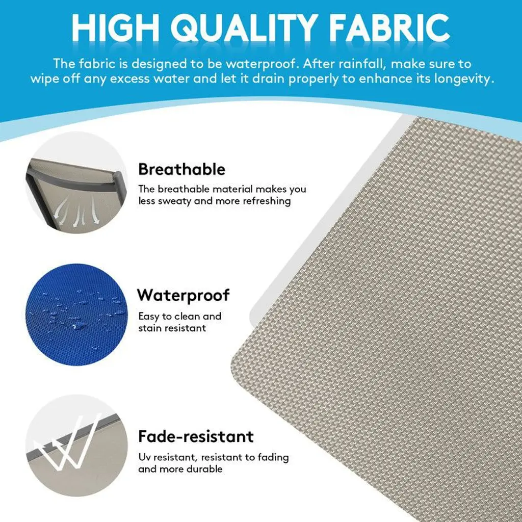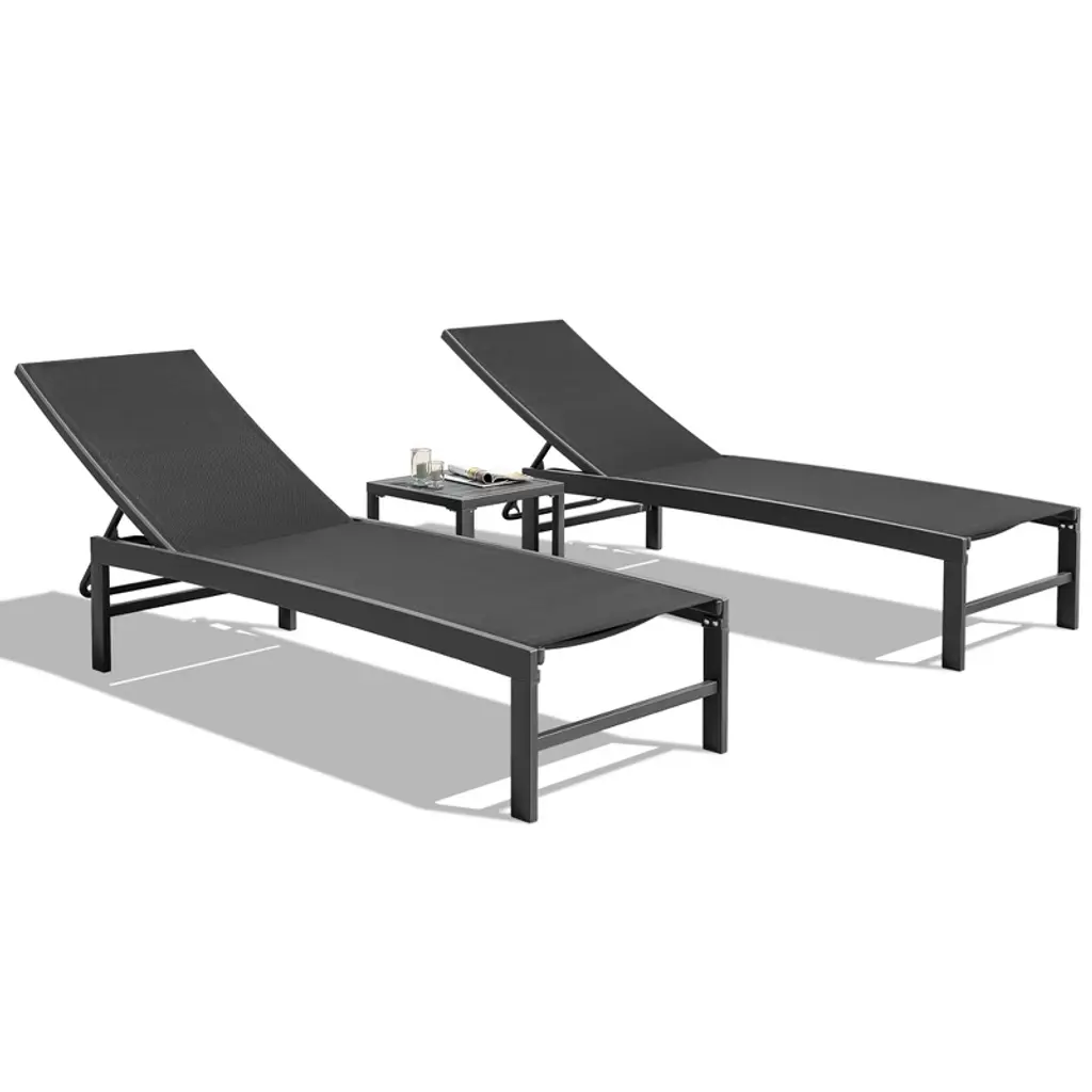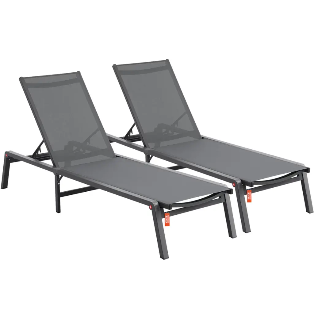 Upgrade your lounging experience with our 5-Position Adjustable Aluminum Chaise – the perfect blend of comfort, convenience, and durability. Find your ideal recline with multiple backrest angles, from upright for reading to near-flat for sunbathing. Stay secure with front and rear locking legs that prevent accidental folding, so you can relax with total peace of mind. Built with a lightweight yet ultra-strong aluminum frame (supports up to 270lbs!), this chaise is rust-proof and designed for all-weather use, whether by the pool, on the patio, or indoors. The UV-resistant fabric stays cool and vibrant season after season. Need to save space? The quick-fold design collapses flat in seconds for effortless storage. Compact, sturdy, and stylish – your perfect lounging companion is here! Perfect for: Small balconies & patios Poolside relaxation Indoor/outdoor versatility Easy storage when not in use Effortless comfort, built to last!